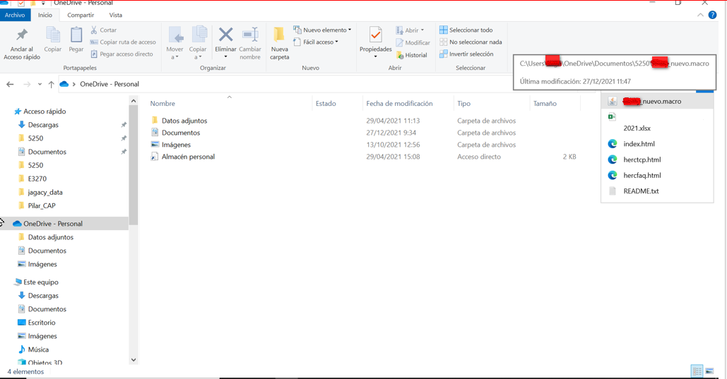 The file, once the test recording is finished, is saved to: C:\Users\xxxxx\OneDrive\Documentos\5250 where xxxxx will vary depending on the name of each user. Later we will need to find this file to import it.