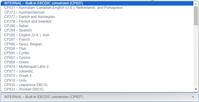 Codepage: we have a drop-down menu