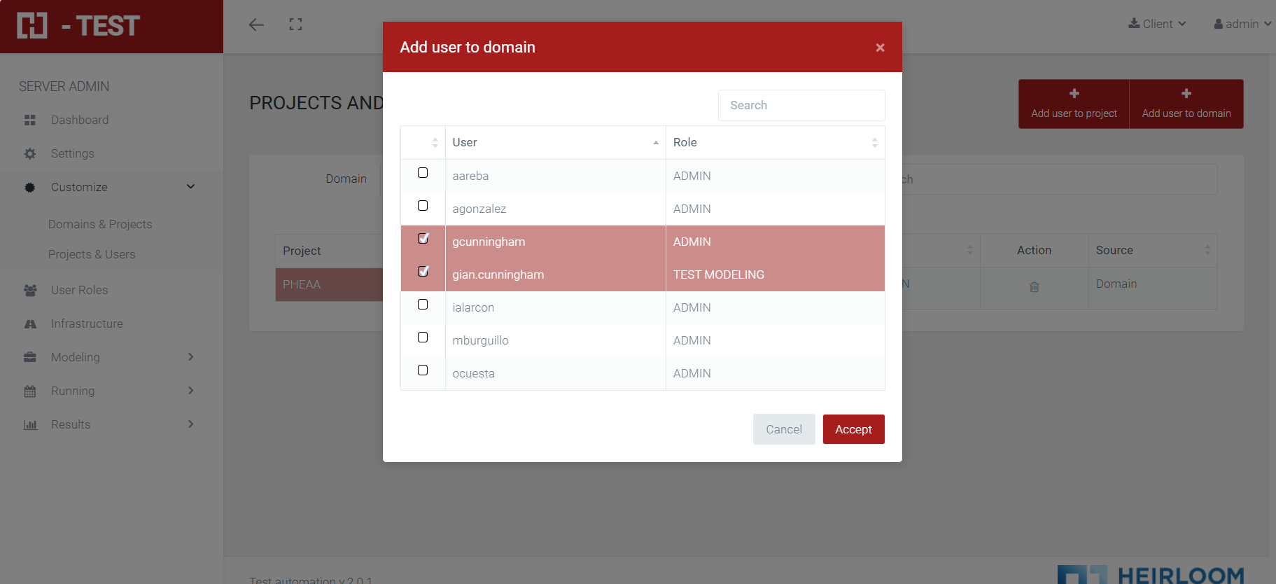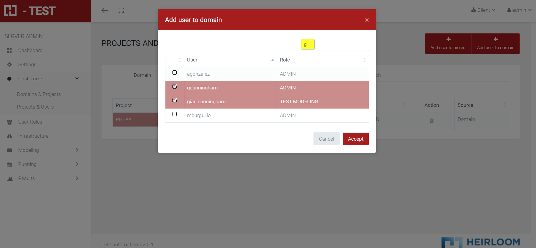 This option of the H-TEST tool allows the administrator to assign a user to a Domain.