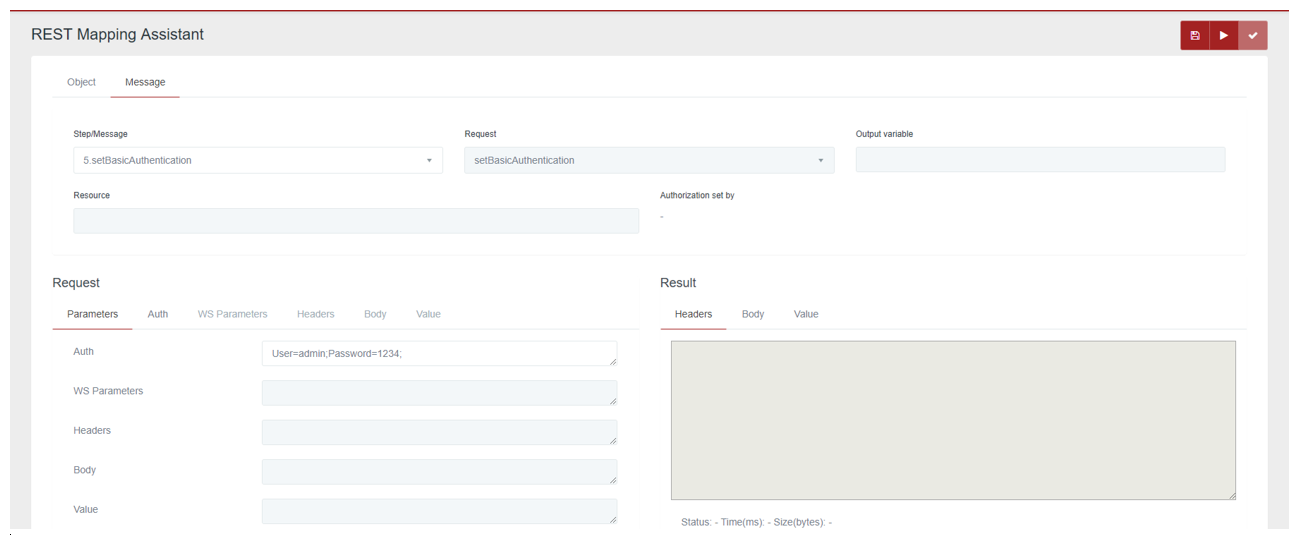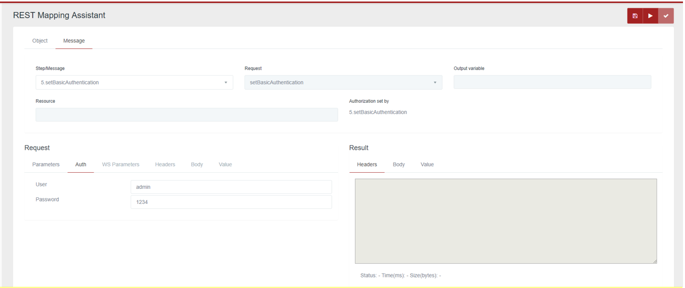 The authentication to be used for each REST request made can be displayed in the “Authorization set by” field, existing in Message.