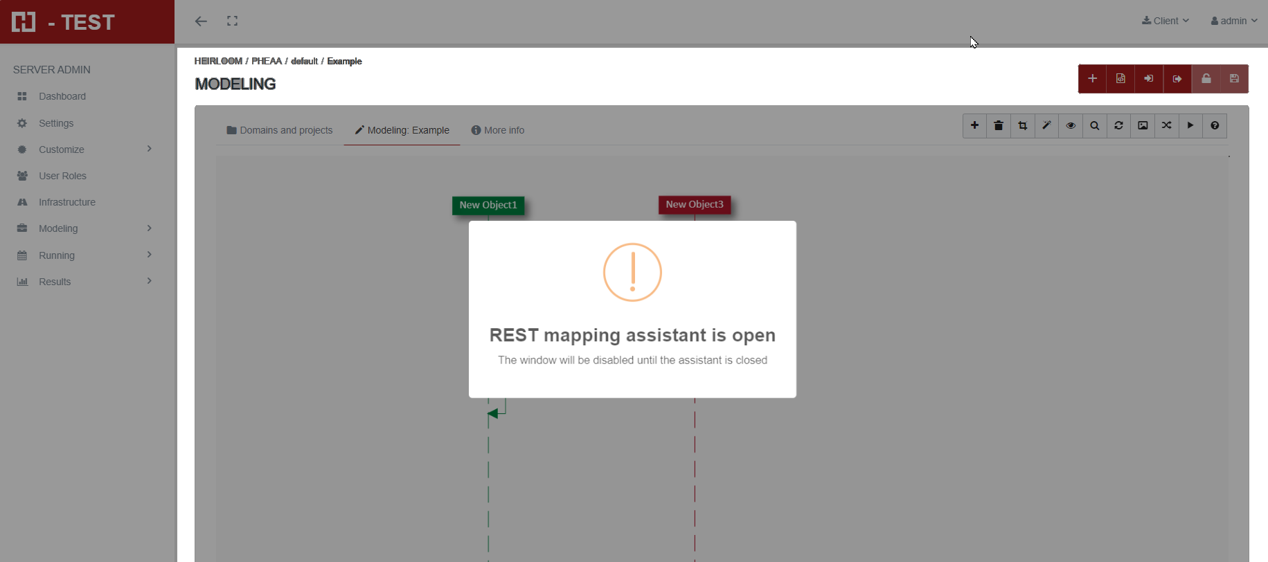 The assistant will be opened in a pop-up window. Before being launched, the diagram will be saved, and later, the edition will be blocked. Example: