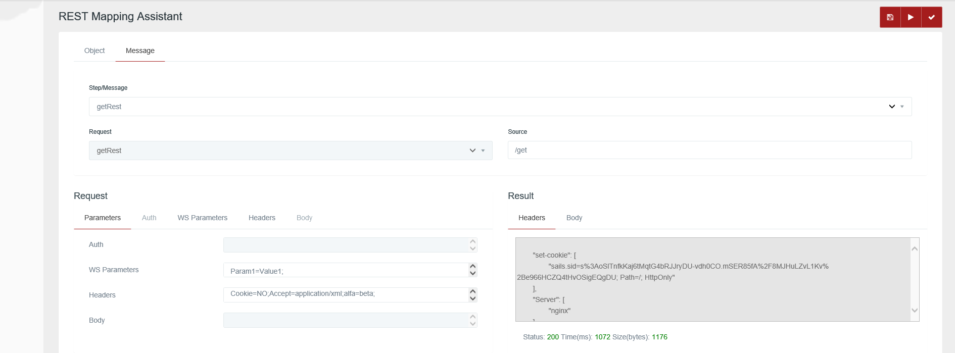 Headers: shows the headers returned by the REST request