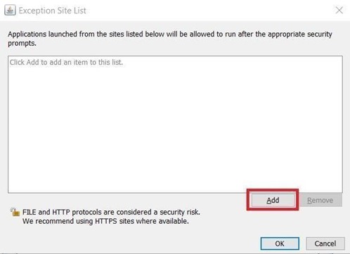 - Add exception on the “Edit Site List” option on the “Security” tab:
