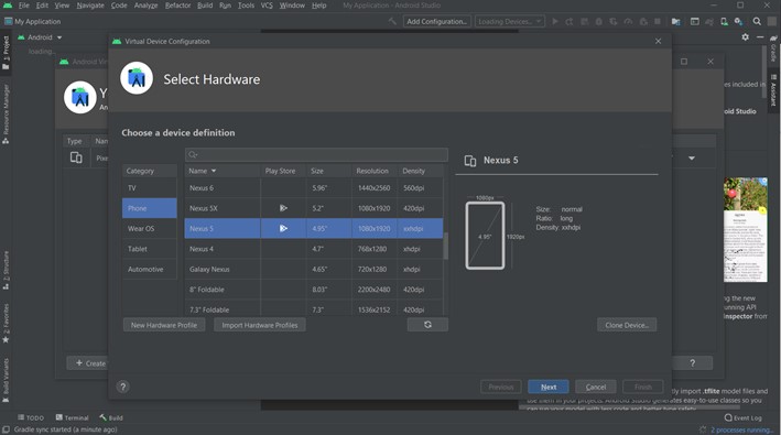 5. Now select the hardware you want to emulate, here I am using the "Nexus 5".