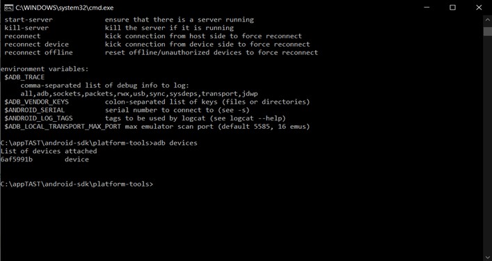 “C:\Users\YOURUSER\Appdata\Local\Android\Sdk\platform-tools”.