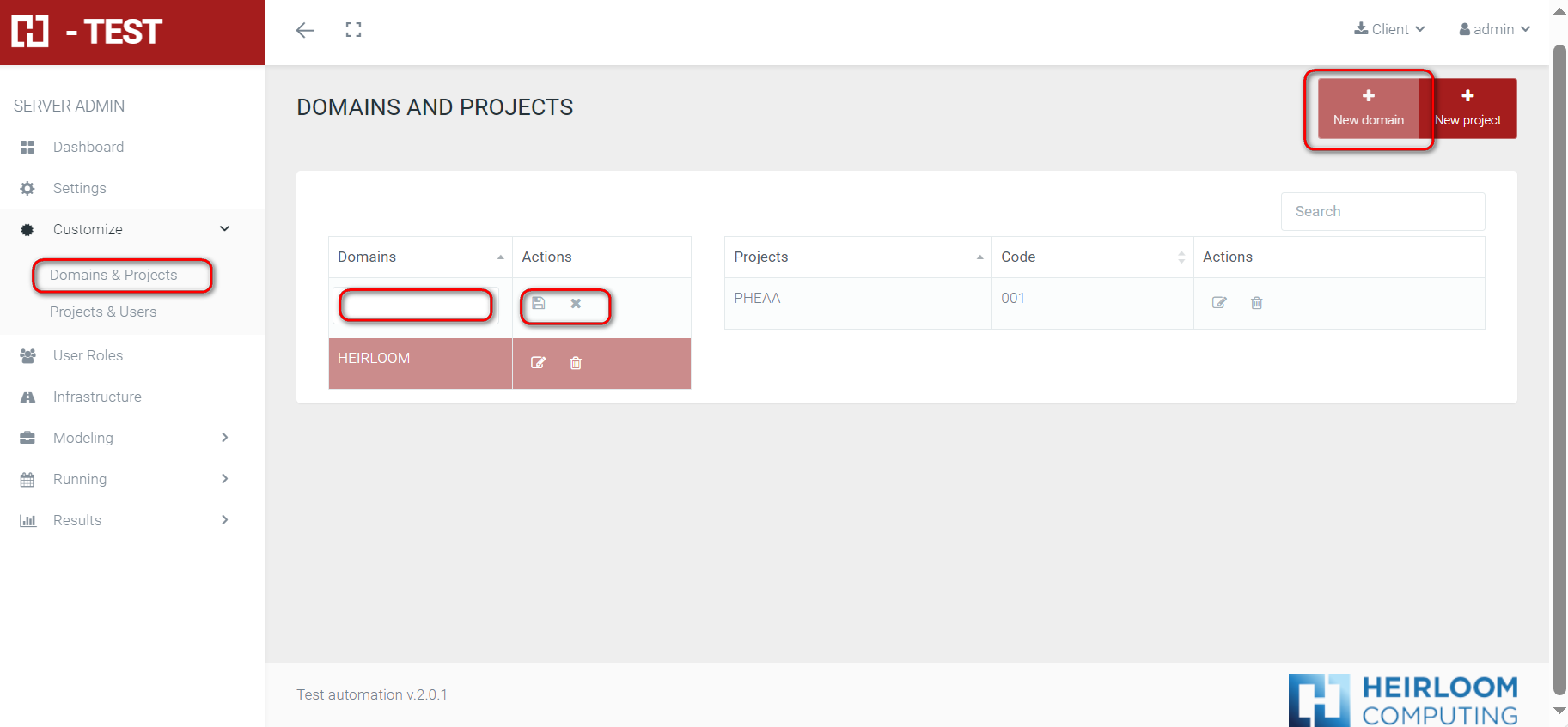 This option of the H-TEST tool allows the administrator to create a new domain.