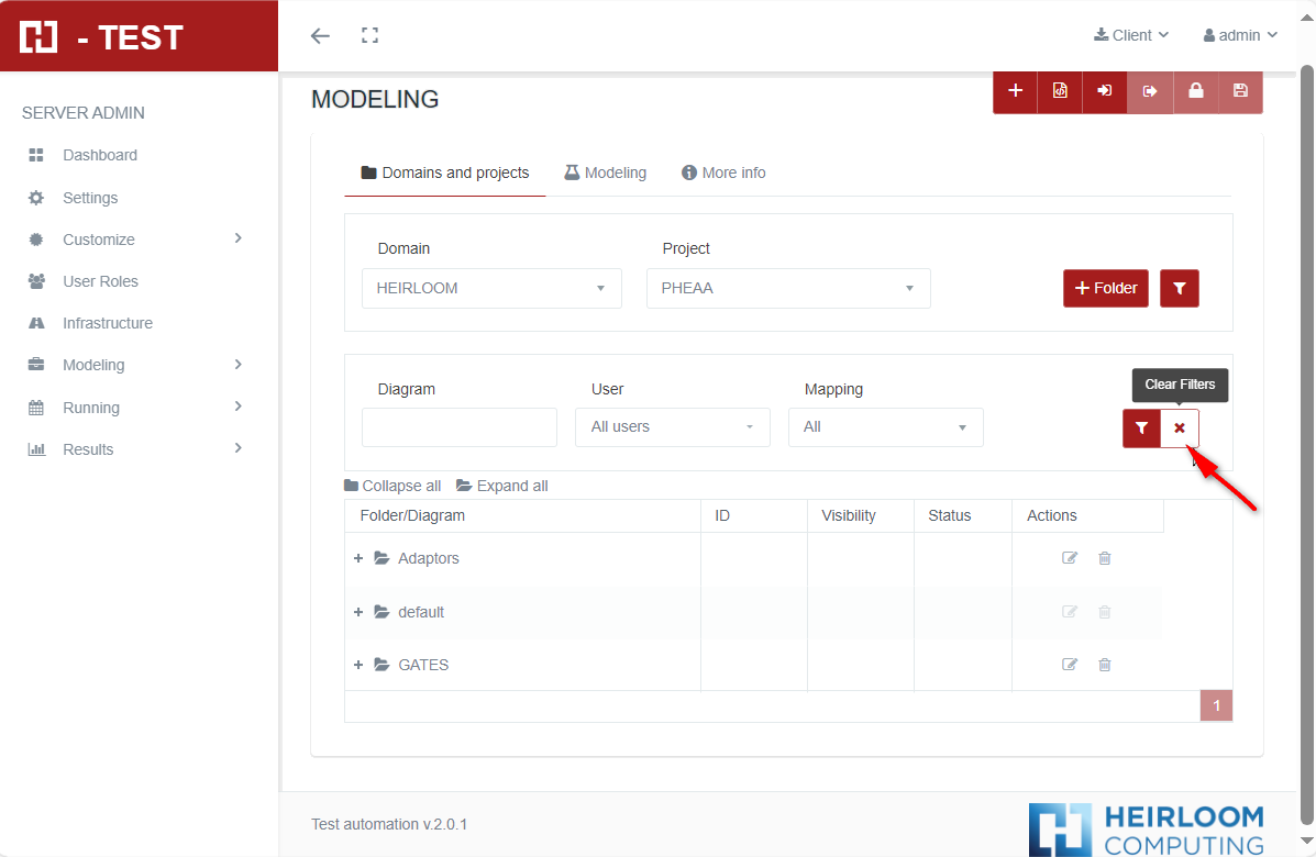 Deactivate the filters that appear on the screen. When deactivating filters on the screen, all the diagrams associated with the selected domain / project are displayed.