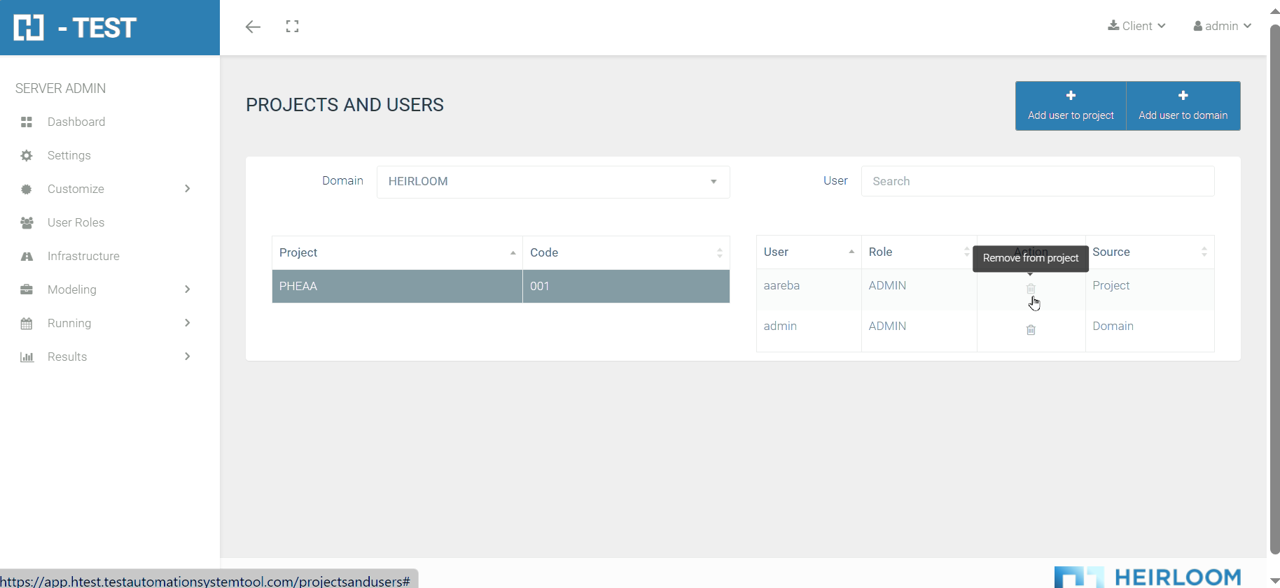 This option of the H-TEST tool allows the administrator to unassign a user from a project .