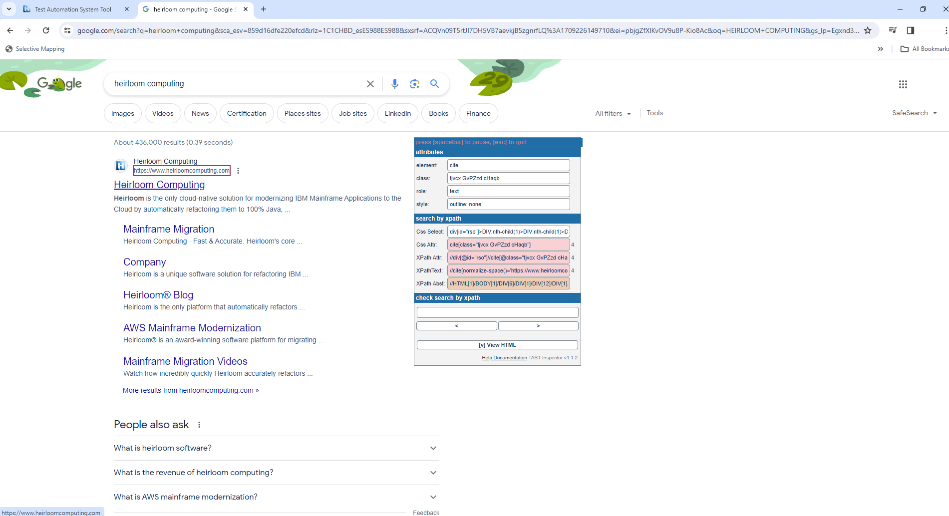 First of all, we are going to create a very simple GUI diagram that will consist of a Google search of HEIRLOOM COMPUTING Google is opened → Accept our Pc'S Cookies message → Include our Google search criteria → Click on the button → Click on the 1st option that appears.