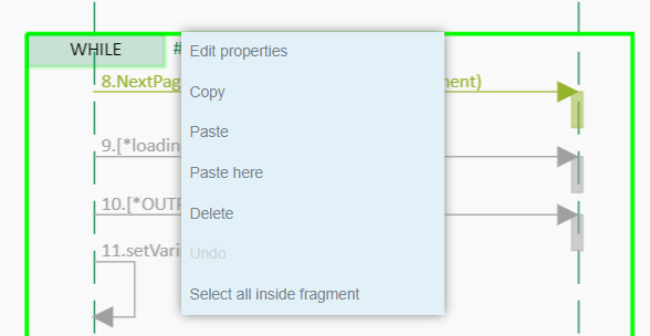 Select all items in fragment: if the selected object is a fragment or subtestcase, it allows selection of all the objects that are within it.