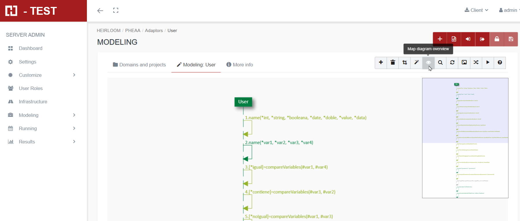 - Navigation from several places of H-TEST to consult a diagram.