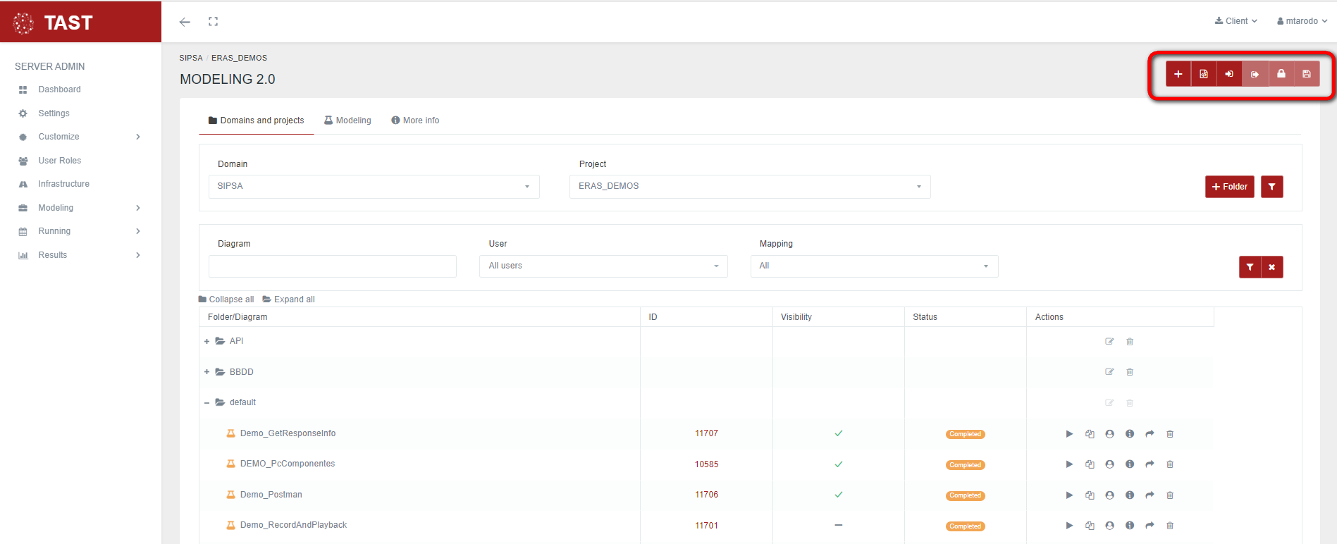 Depending on whether the diagram is unlocked by the user (“Edit” mode or “Display” mode, or if it is more graphic, “open padlock” or “closed padlock”), some options will appear as active or not active.