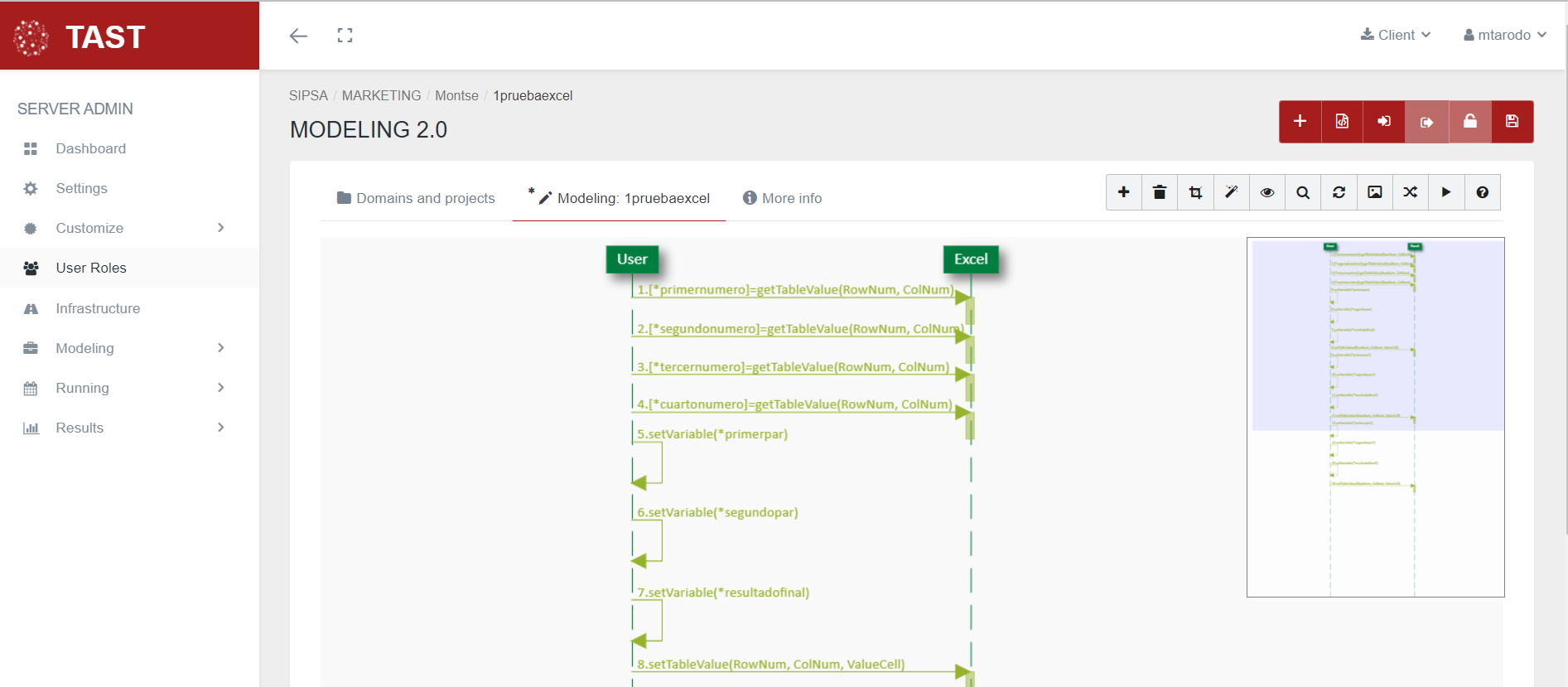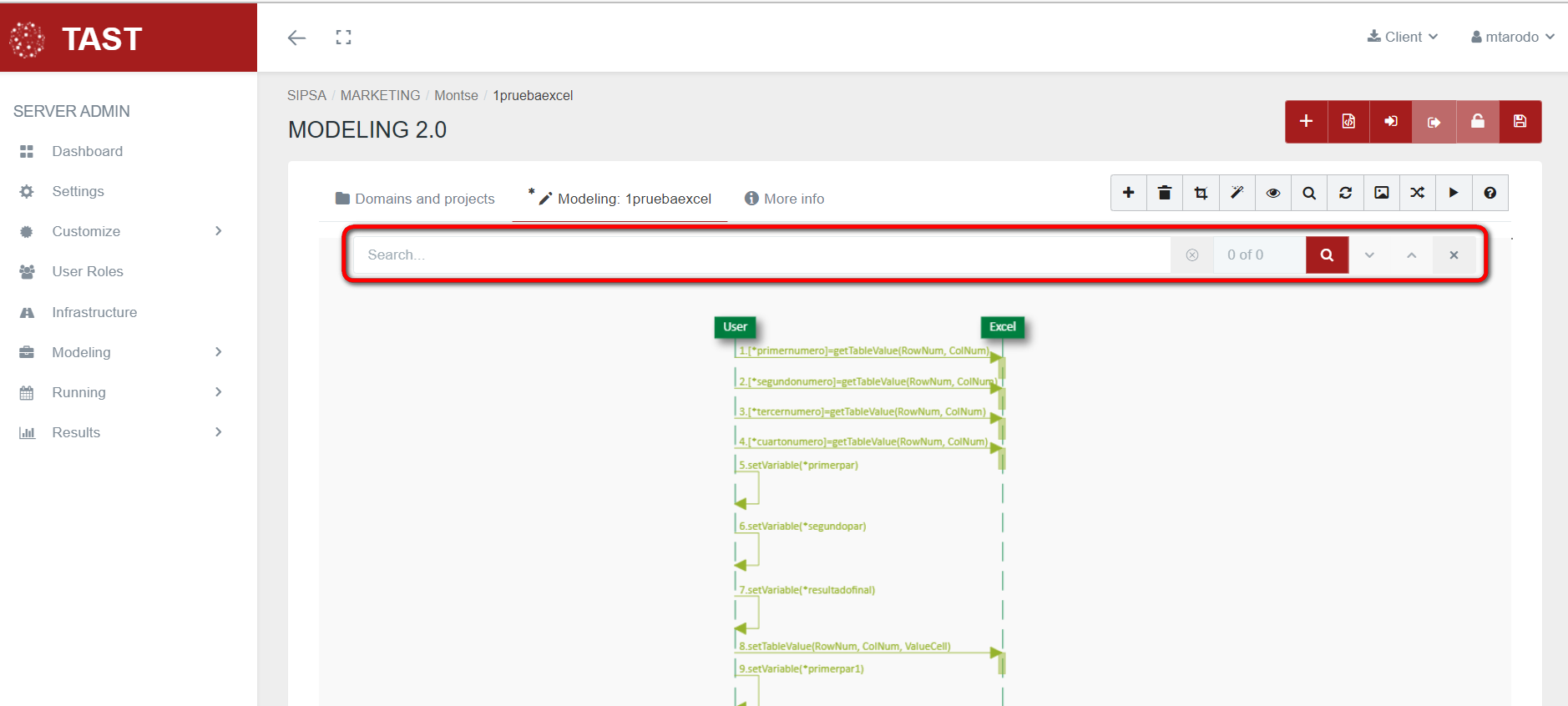Once we enter the string to search for, and pressing the Enter key or the Magnifying glass button on the form, all the elements of the diagram that contain said string will be searched for, in any of its fields.
