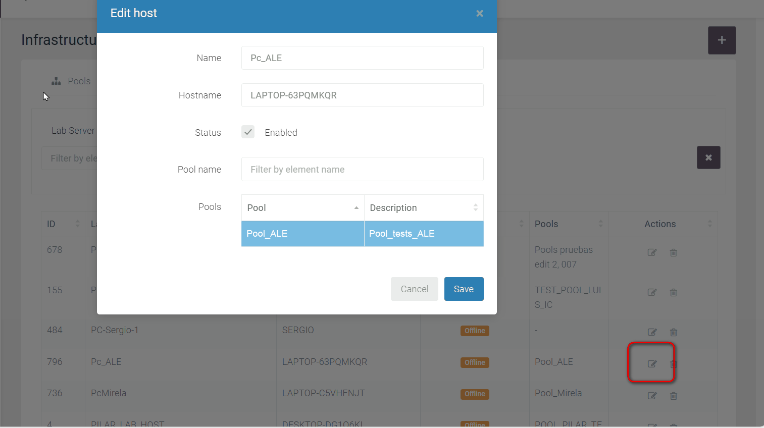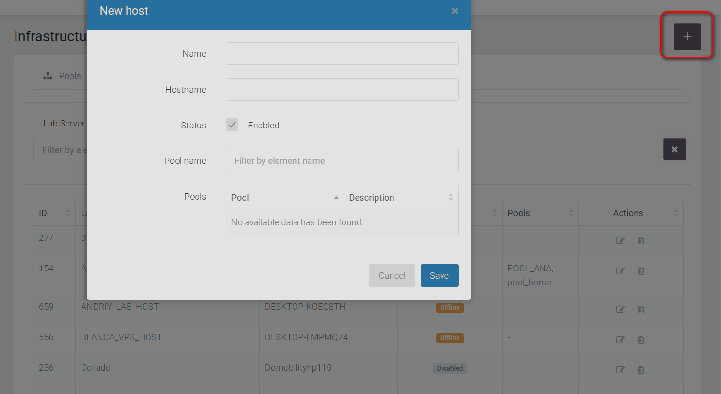Status: this check-box allows you to decide whether the Host is Enabled or Disabled. While Disabled, any execution planned on it will not be run. When Enabled, it will show the list of the available Pools in case you want to assign the Host to a Pool.