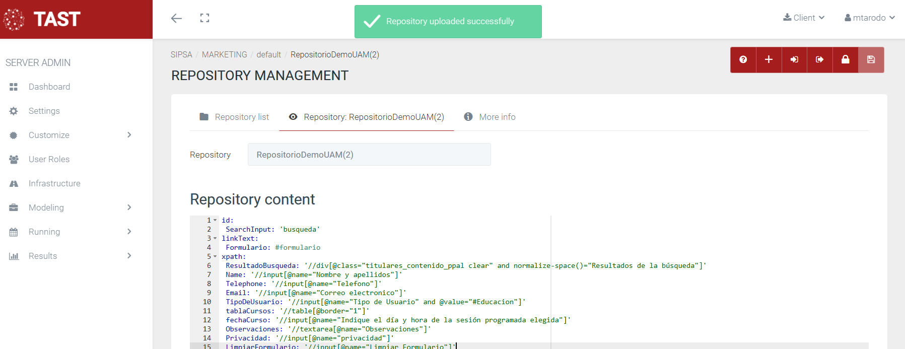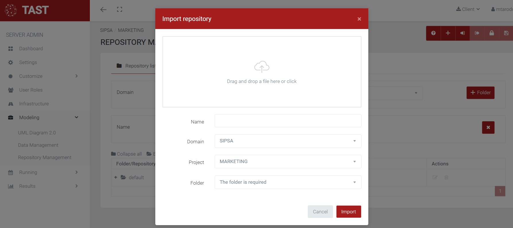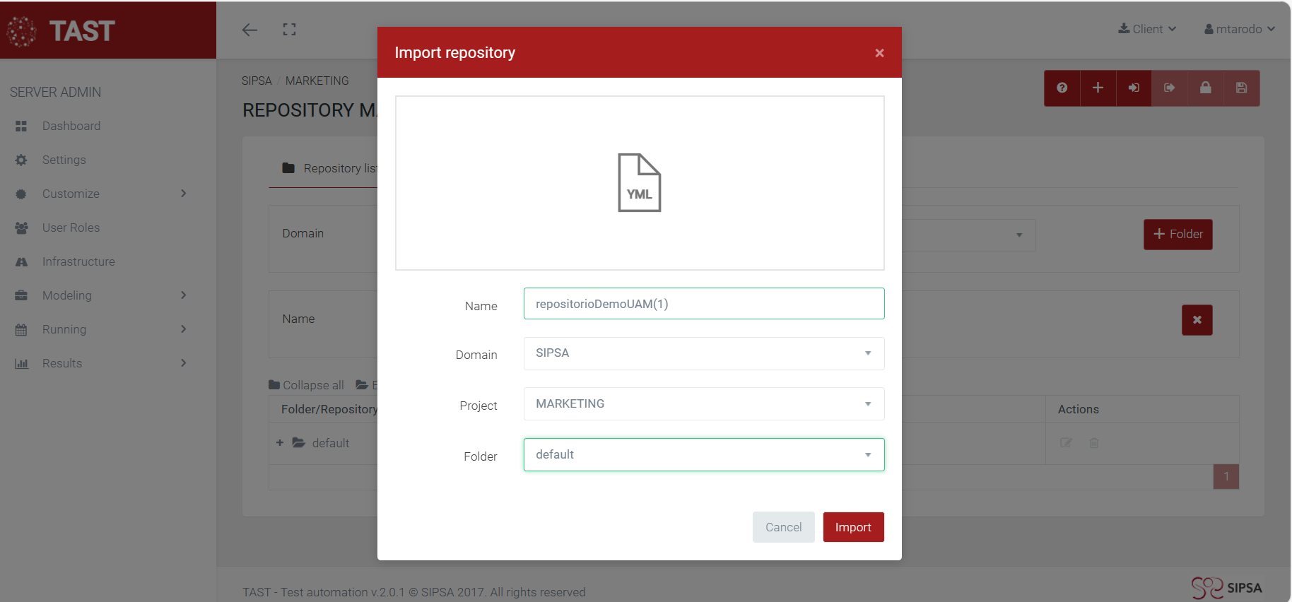 In this tab, all the repositories that the users are going to use in the diagrams will be stored The repositories are TXT or YML files (they must have YML /YAML format) that we create and upload to this tab and contains information that we can use in a diagram.
