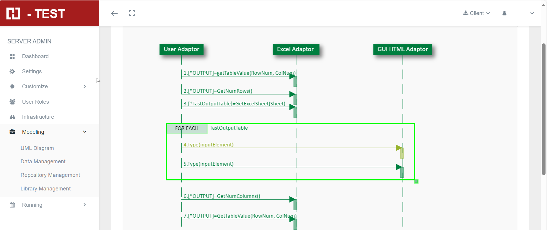 DATA MANAGEMENT: Allows to assign test case data to each Gate included in the diagrams.