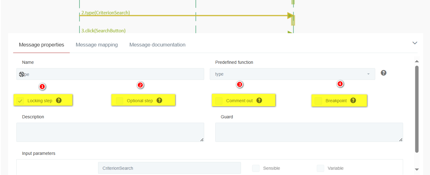 Breakpoint: The breakpoint check is used to stop the execution of the test in this step. It is helpfull during the creation of the diagram.