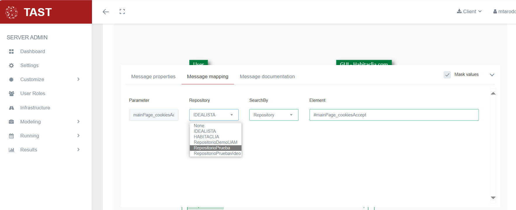 Import repositories with a TXT and YML extension. The repositories are defined by keys. These repositories must have a first level key that will be a “searchBy” option listed in a diagram message. Then it will have a second key that will be a name to identify the property and finally the value that is the path of the searchBy we are using. (those keys are not “case sensitive”, nevertheless, when you put it in the element box in the message, it has to be exactly as the repository property.