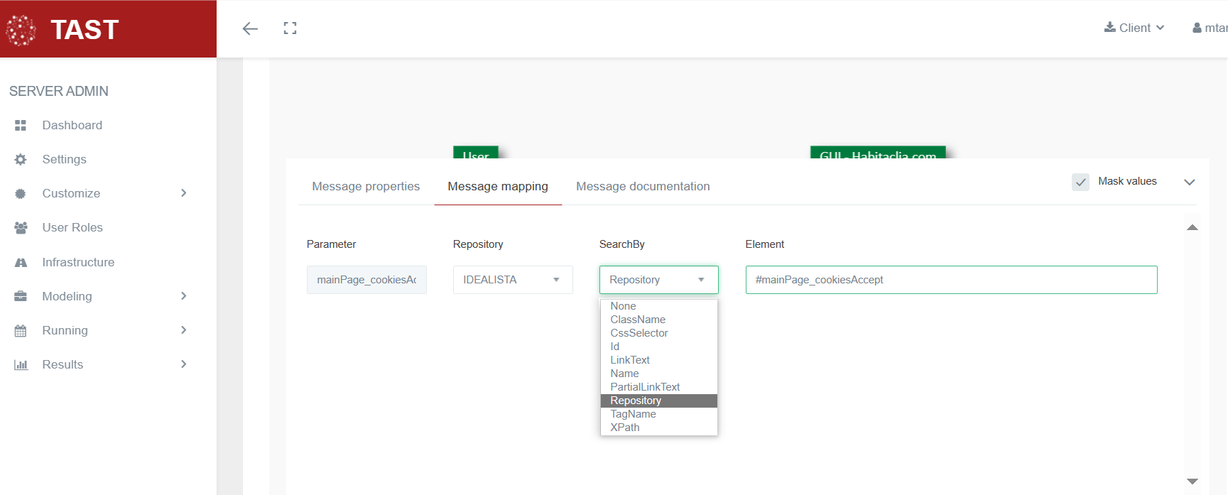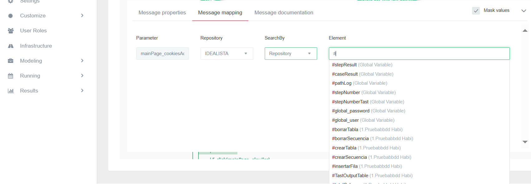 - There are also updates in the messages section. As can be seen in the image, a drop-down field “Repository” has been added from which you can choose the repository you want to use in this parameter. Once the repository is chosen, the next step is to select “Repository” in the SearchBy field. And in the “Element” field you can use the repository keys as variables after typing hash ”#”, and have Repository and searchBy selected.