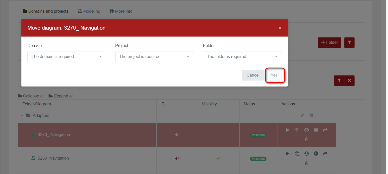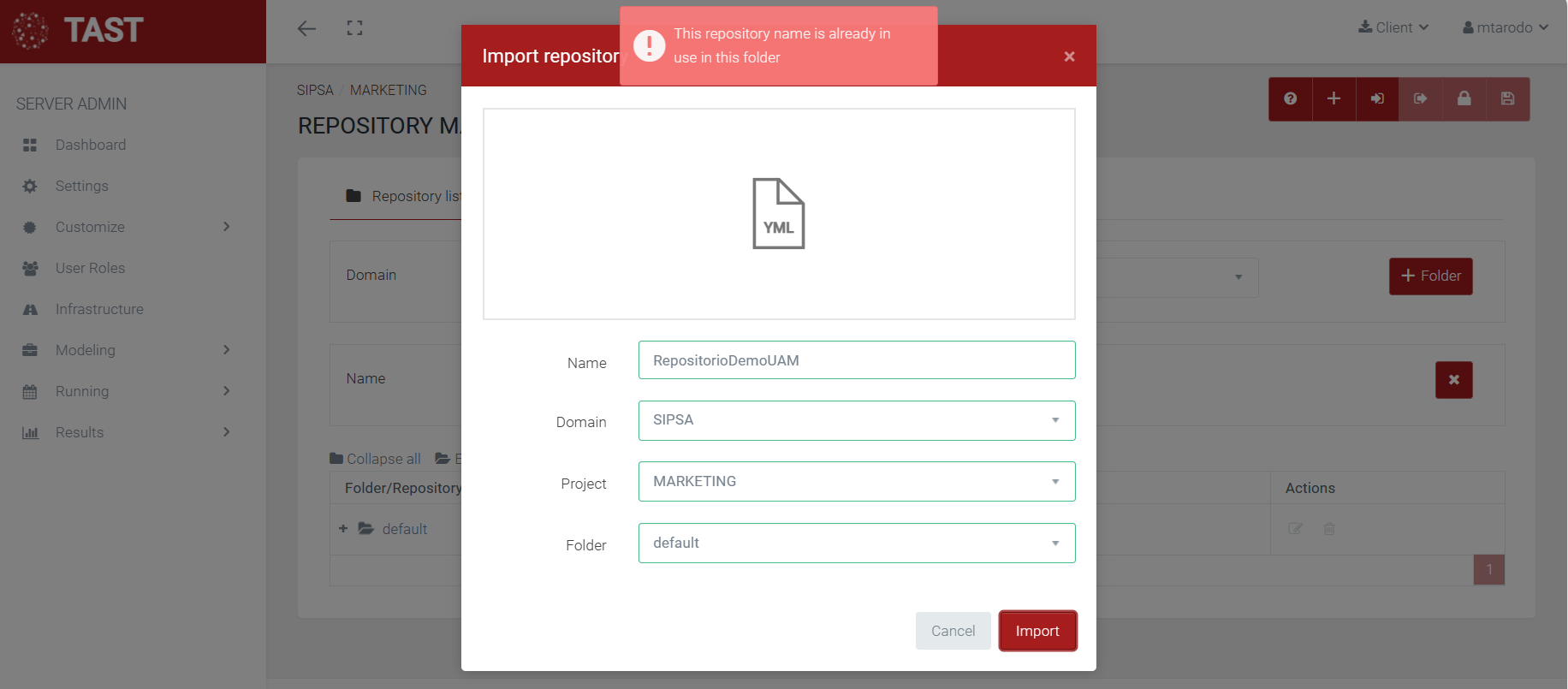 - We can add or delete all the repositories we want. Once accepted it is saved and the diagram is updated with the repositories in the “selected repositories” list box, also this can delete old repositories from the diagram in case there was any and add new ones. Although the repositories are enabled immediately after selecting them, the relation repository-diagram can´t be confirmed until the diagram is saved.