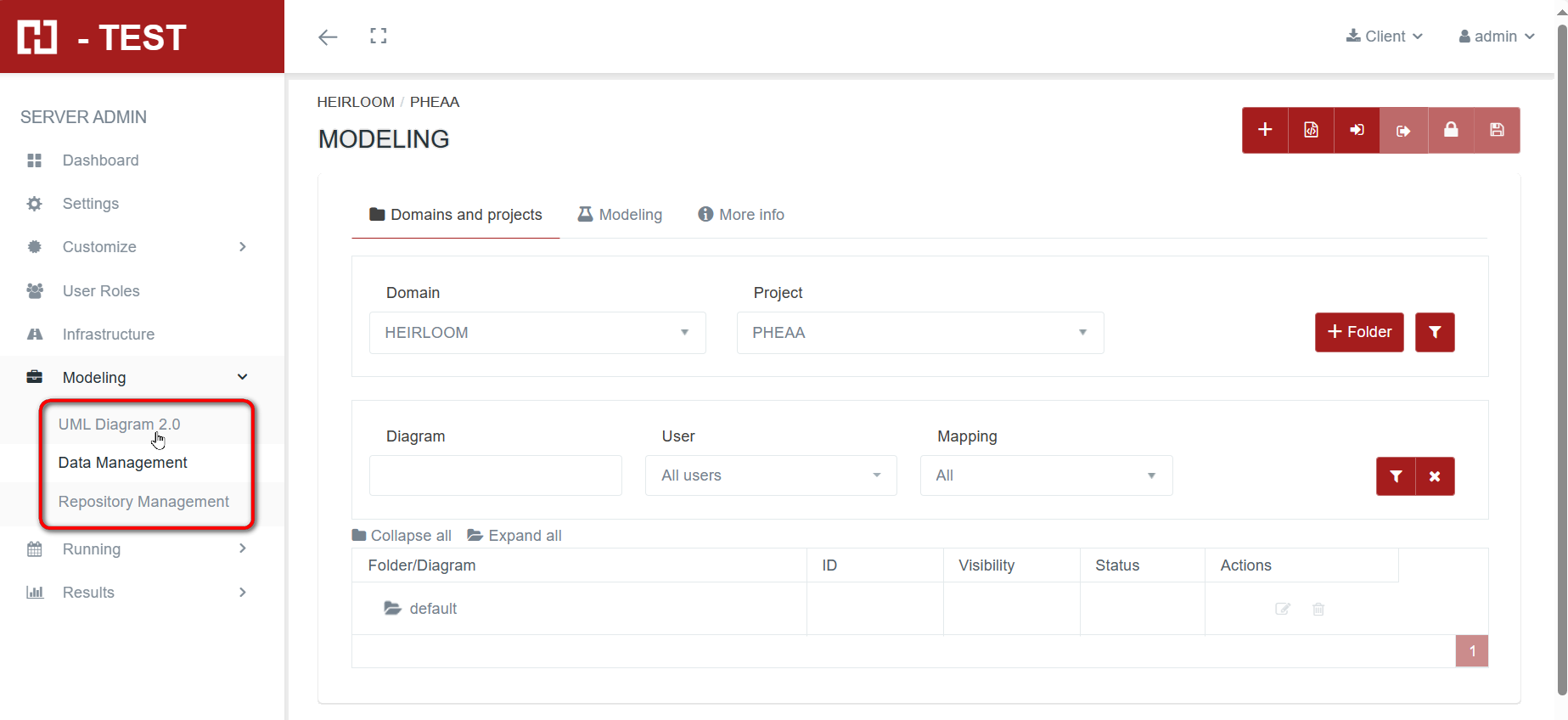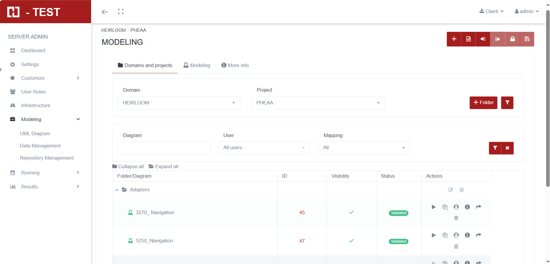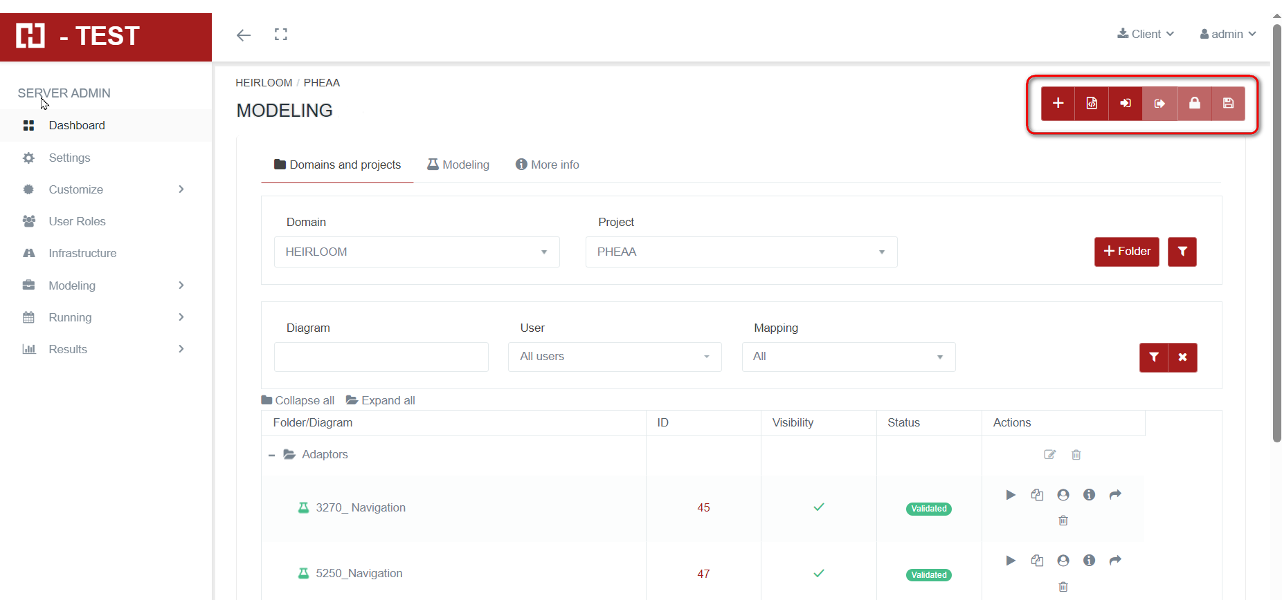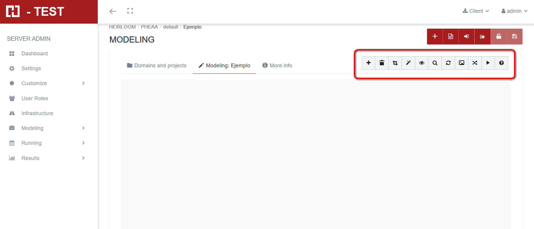 When logged in the tool, the user can see a menu in the left side (see First-steps-in-H-TEST for further info). In this menu, the user will click on the button “Modeling”.