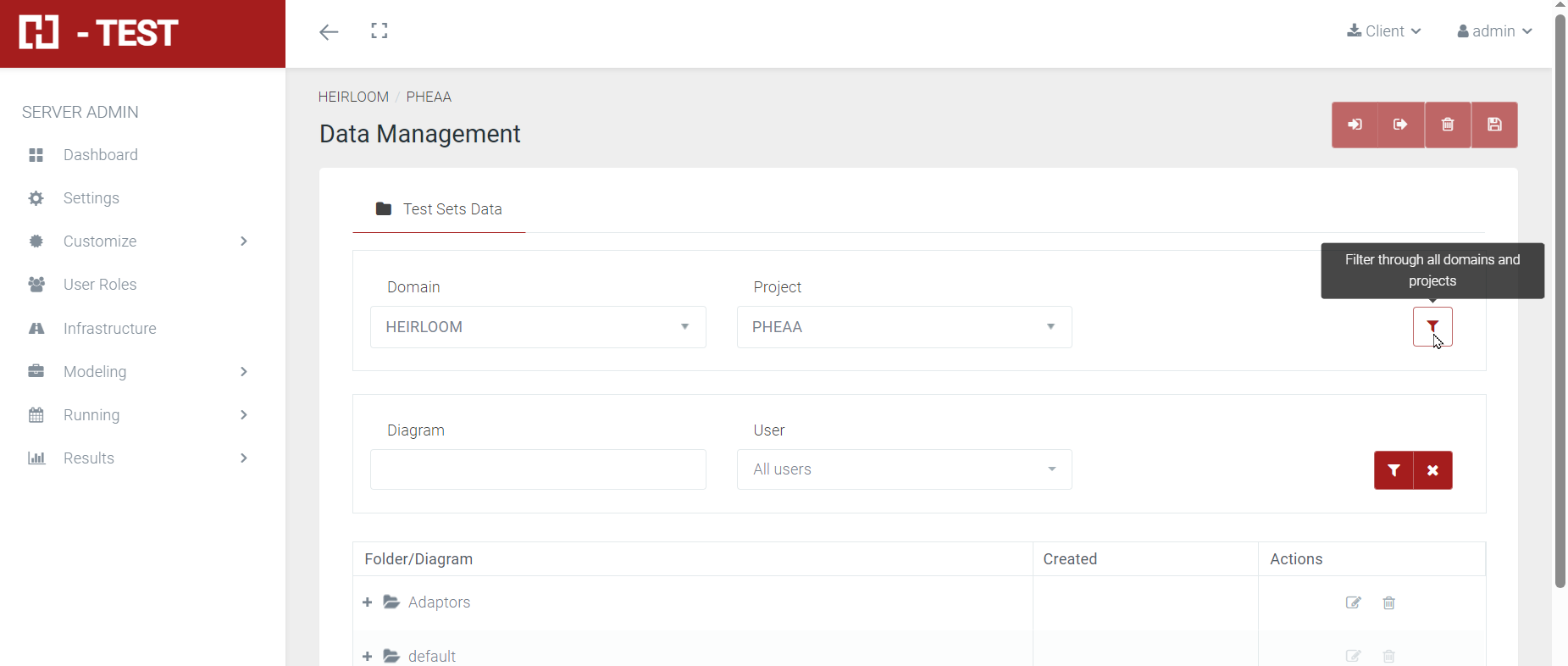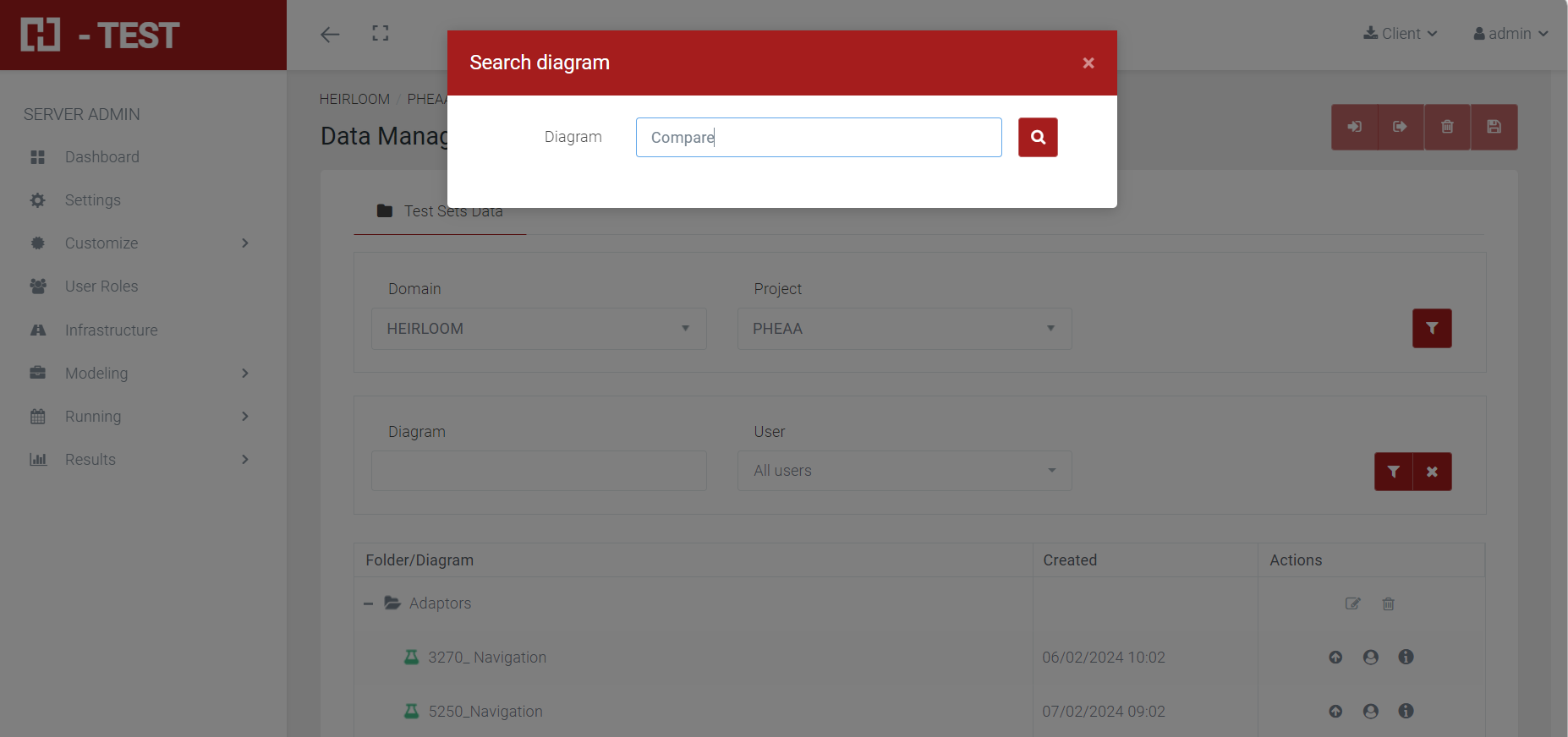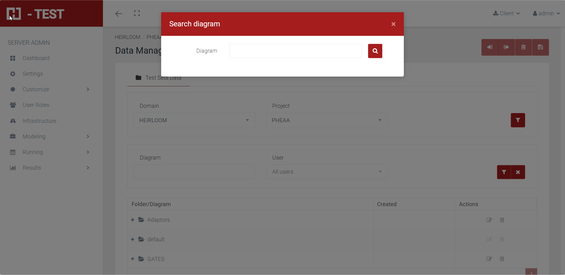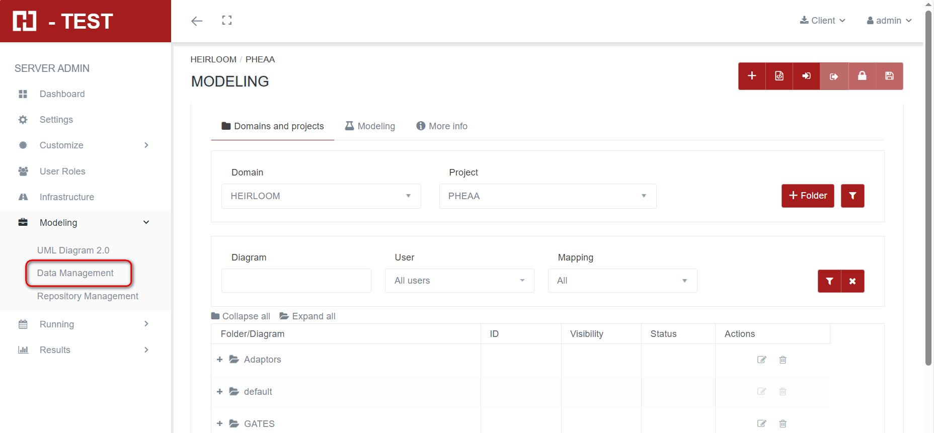 When logged in the tool, the user can see a menu in the left side (see First-steps-in-H-TEST for further info). In this menu, the user will click on the button “Modeling”.
