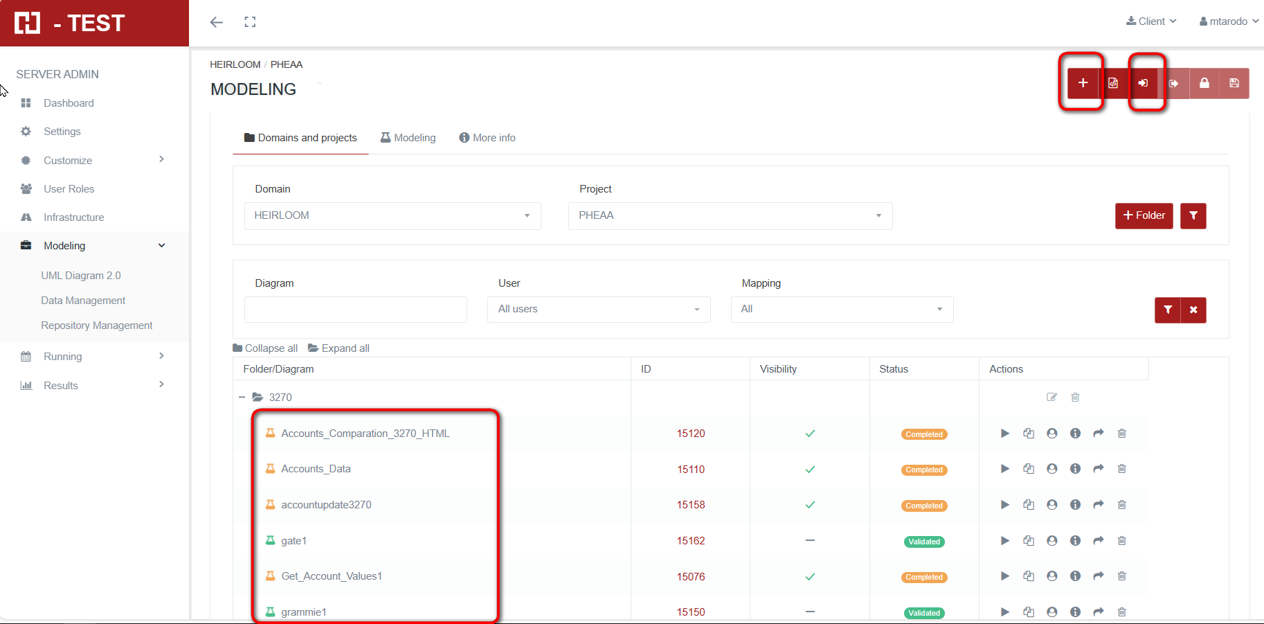 - If the user chooses to import a test case already created, he will click the “Import” button near the “New diagram” button.