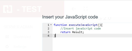 By clicking on this field, it expands and takes us to a modal window with the special code editor for entering Javascript or Sql code.