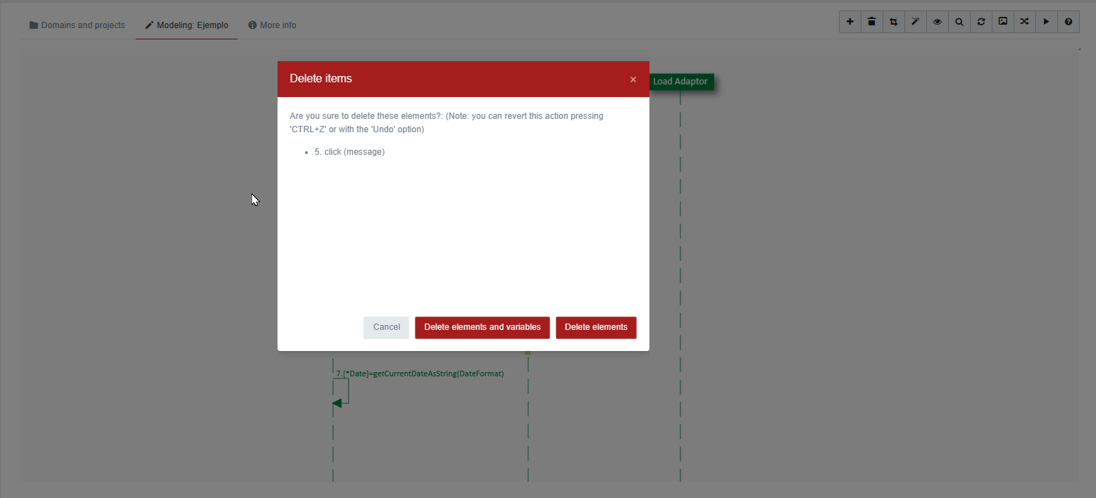 Delete elements: allows you to delete the selected diagram object(s) using the 'trash can' icon.
