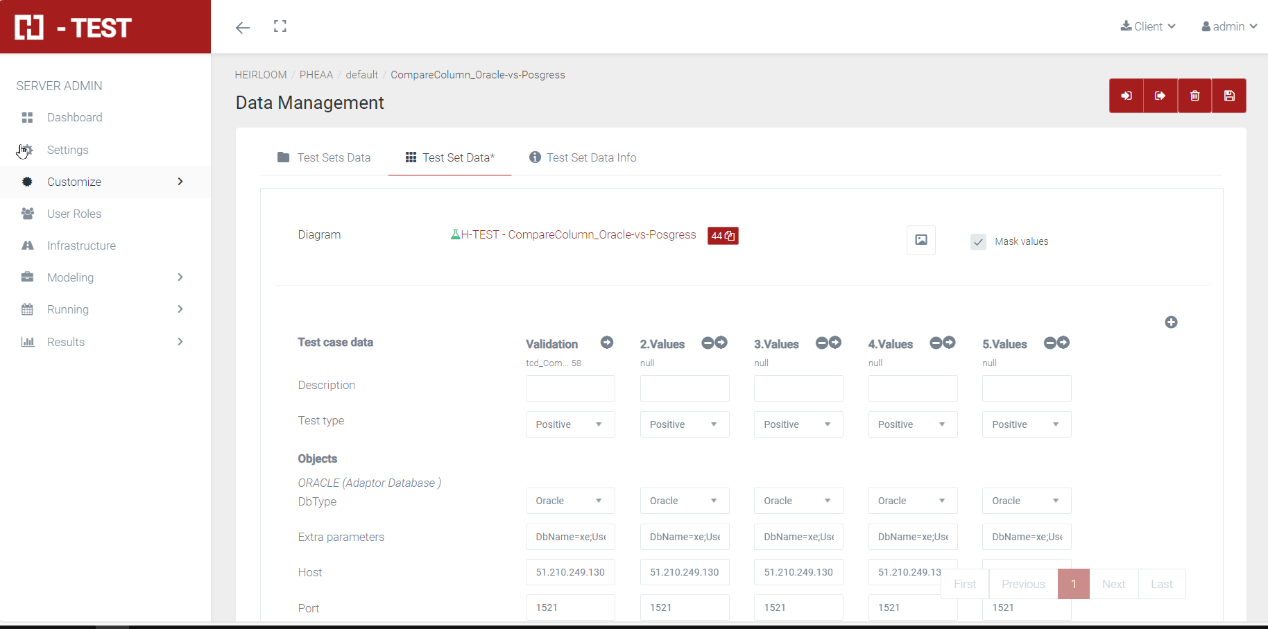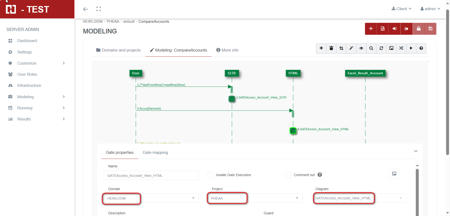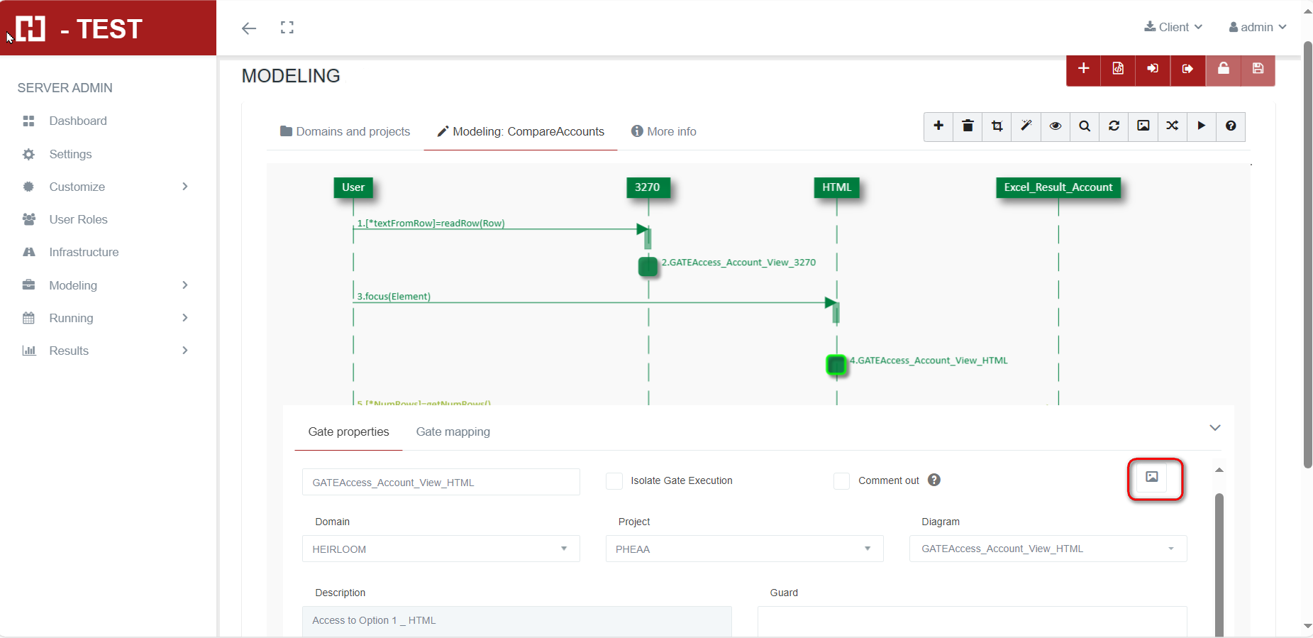 DATA MANAGEMENT: Allows to assign test case data to each Gate included in the diagrams.