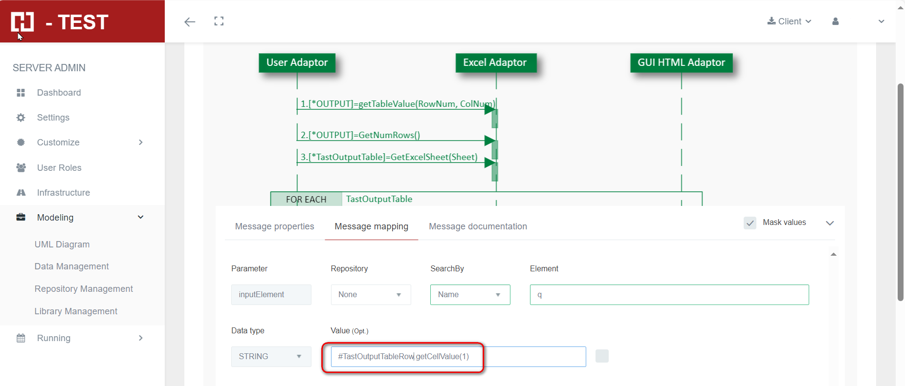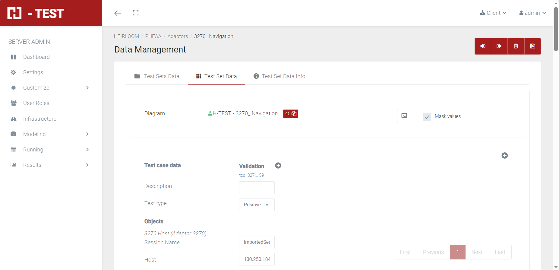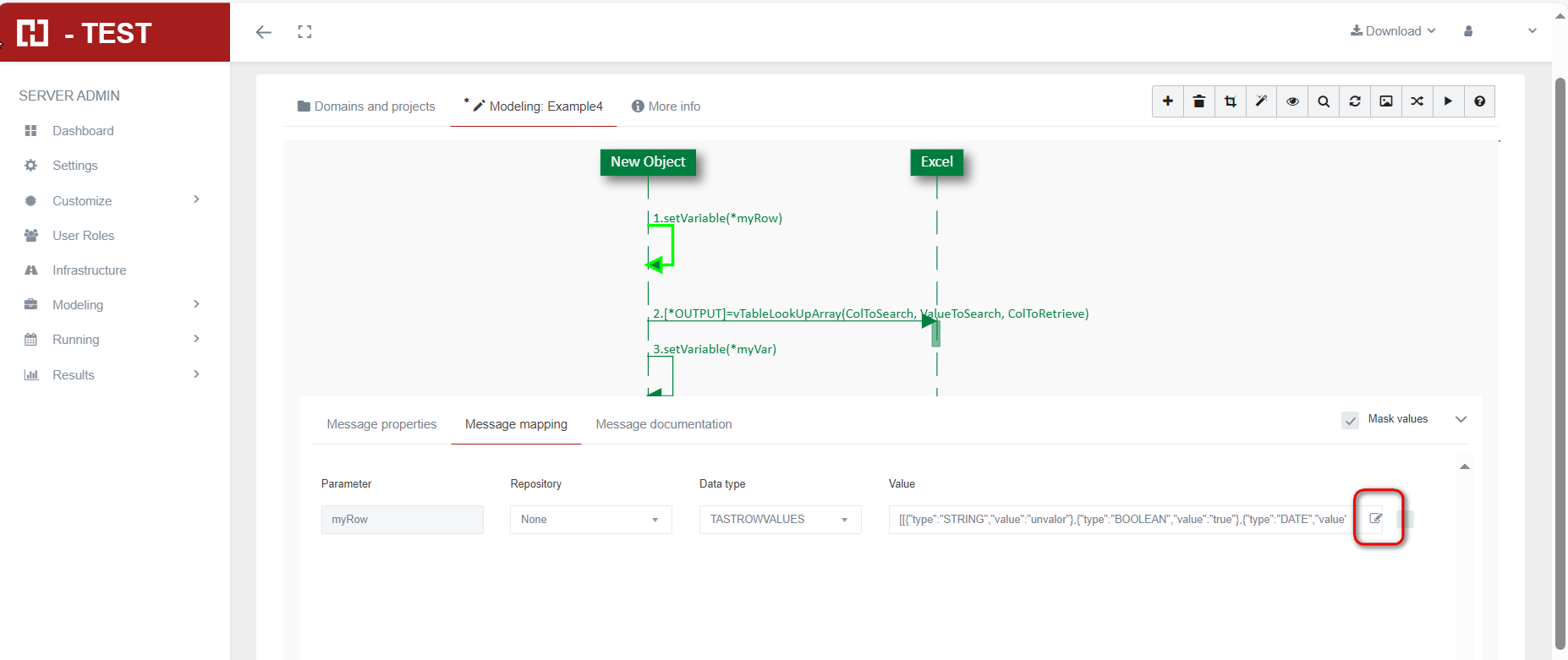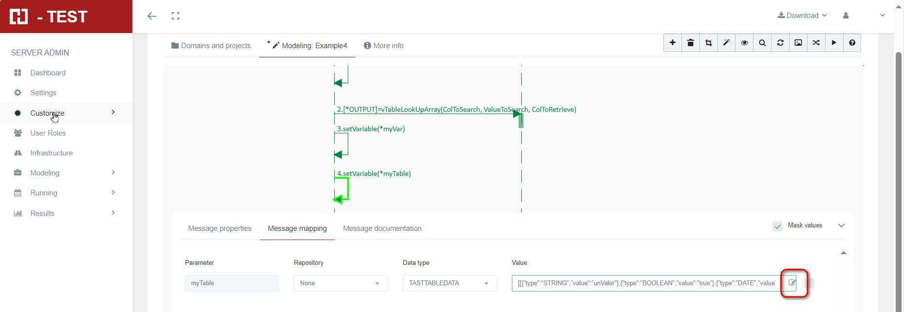 DATA MANAGEMENT: Allows to assign test case data to each Gate included in the diagrams.