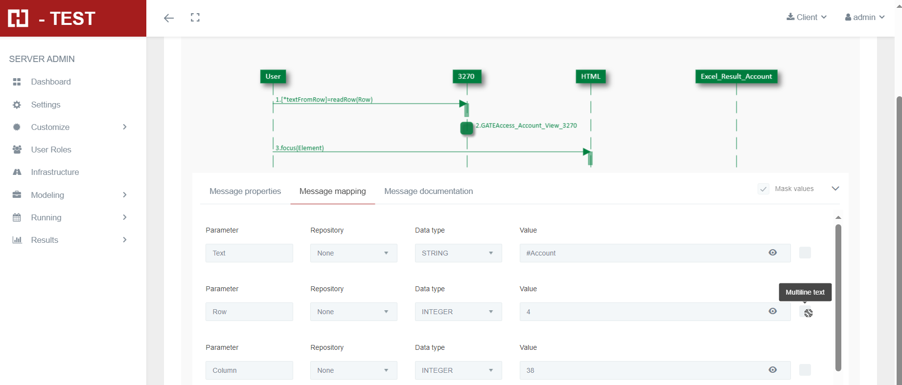 In a message, by double click over it, is possible to indicate the type of action when the step is executed based on the following checkbox: