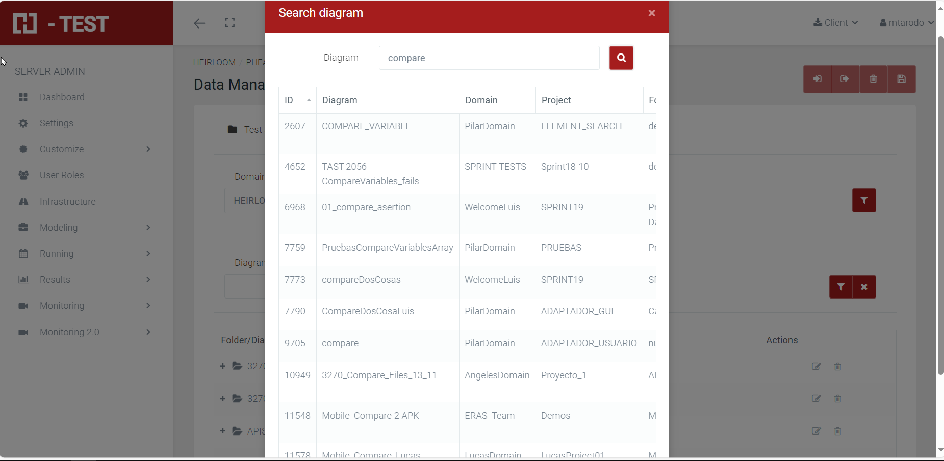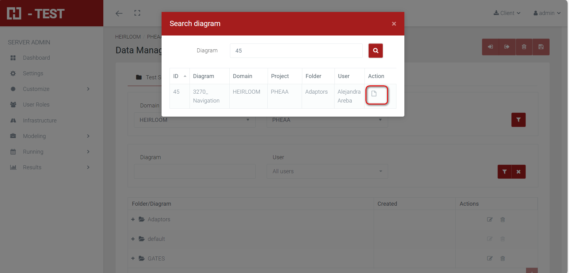 This option of the H-TEST tool allows the user to manage UML diagrams. It will also be able to manage the data and manage the repositories of the test cases that are designed.