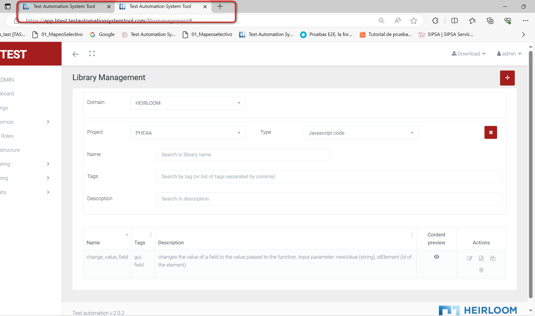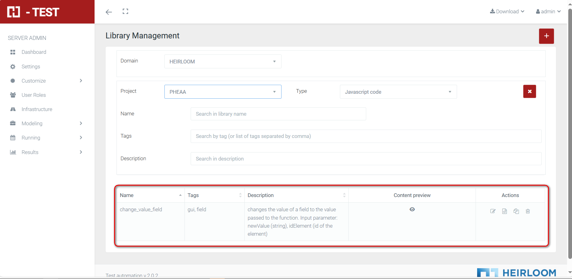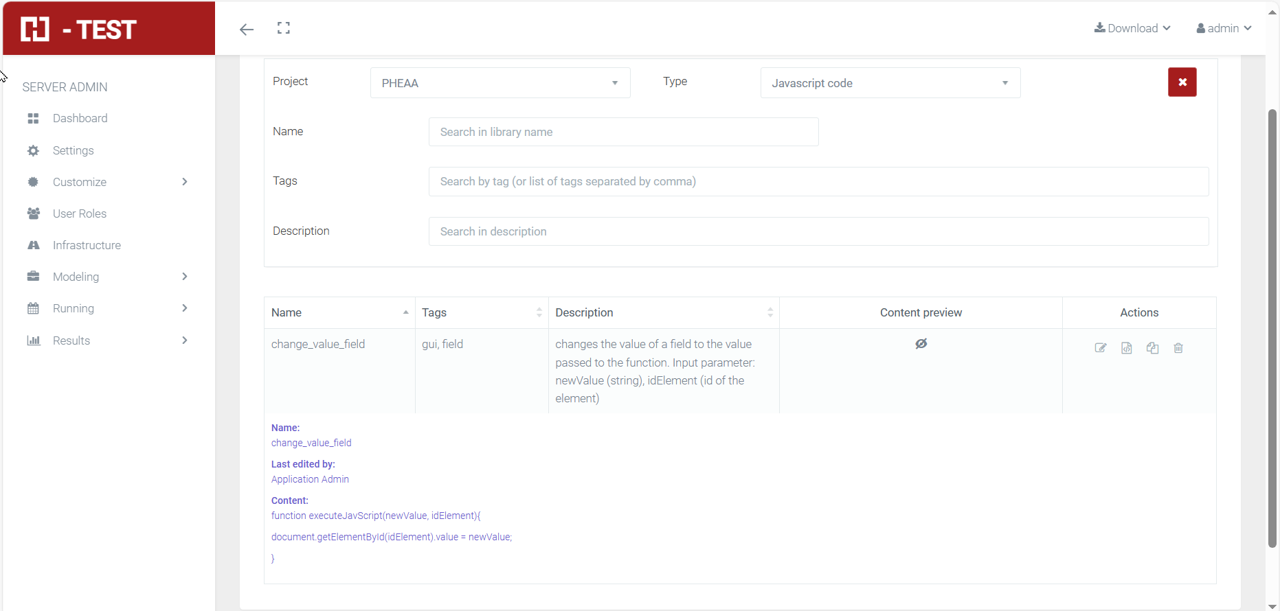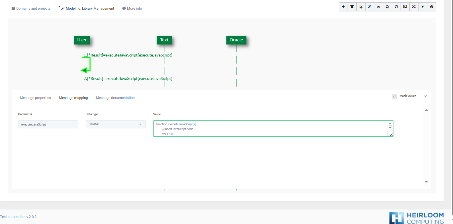 Library Management provides H-Test, and specifically the diagram modeling part, with a library management tool to store, organize and query javascript functions or Sql queries that the user considers useful, for example to be reused in the messages of other diagrams.