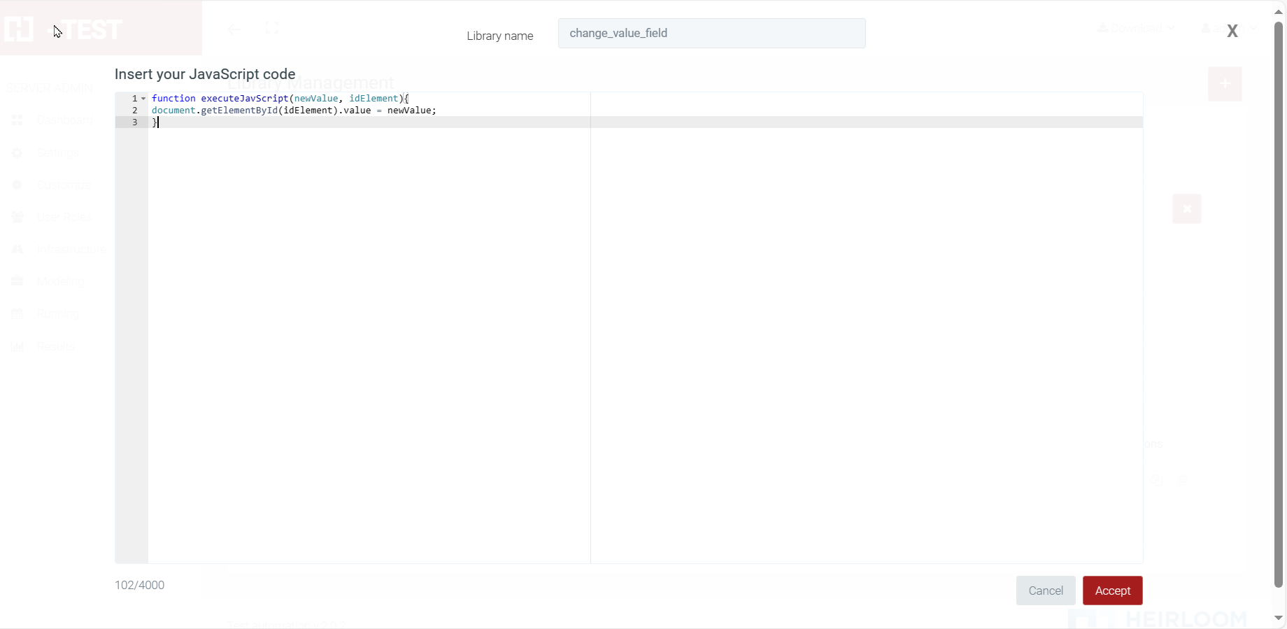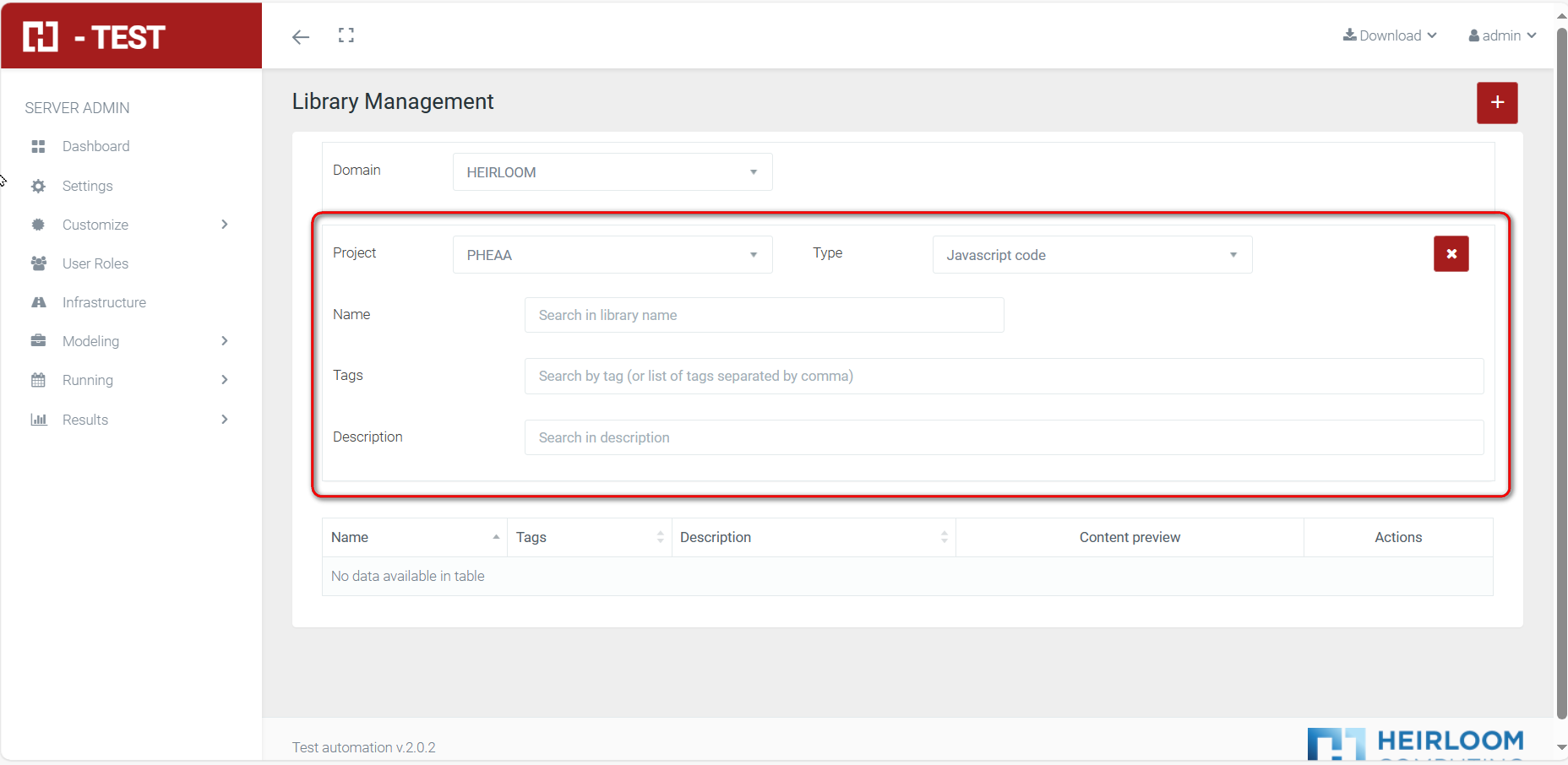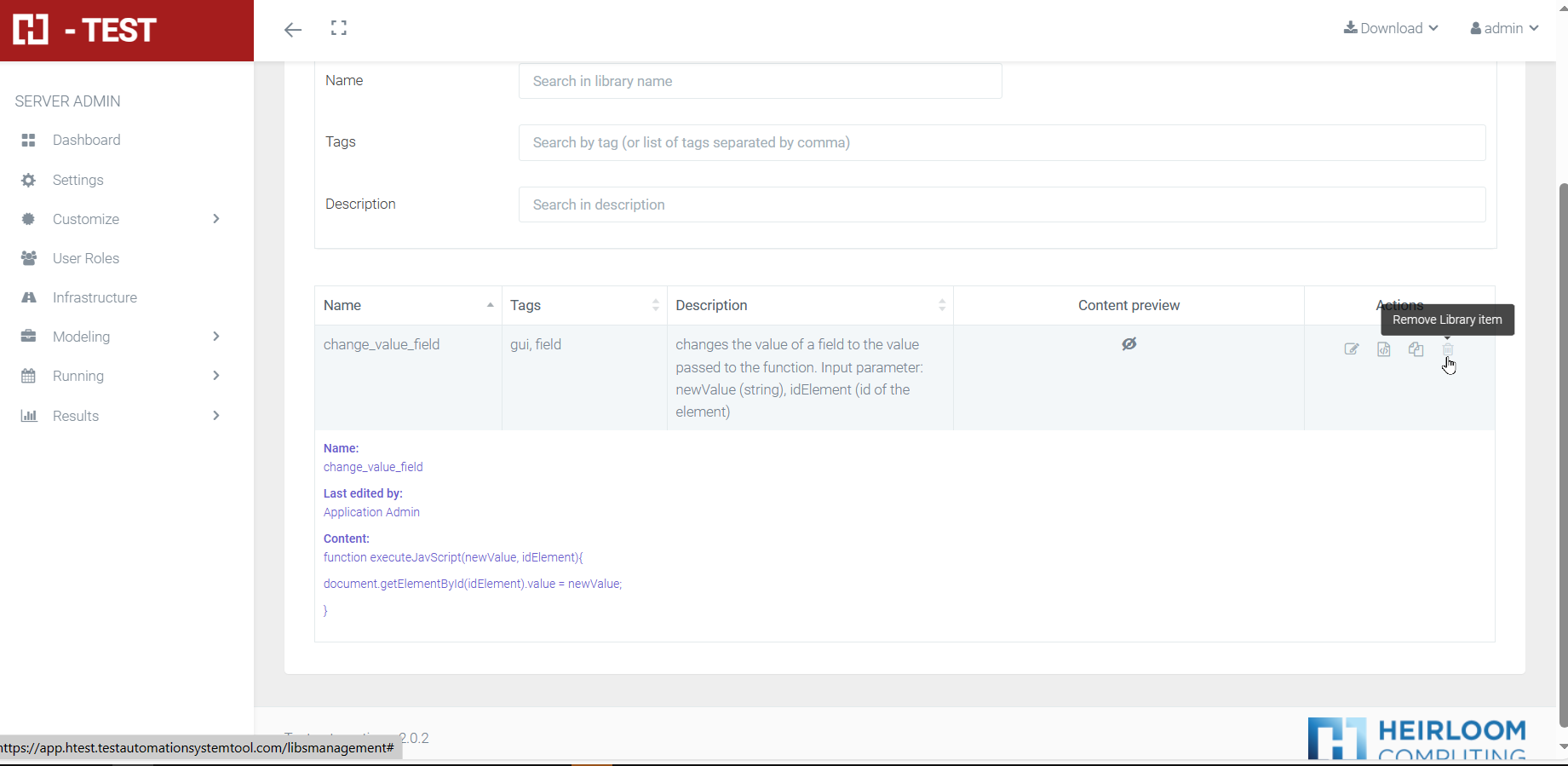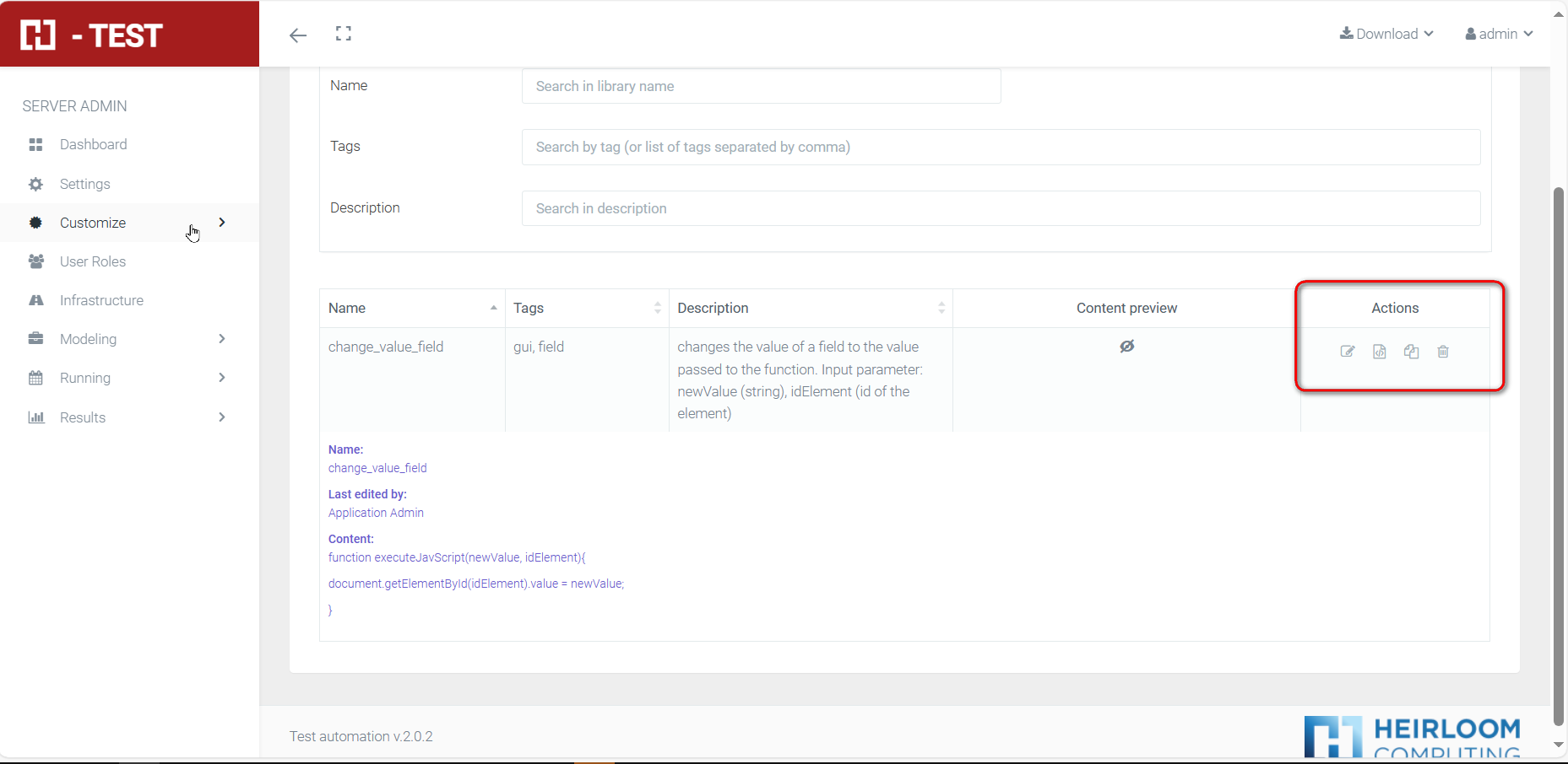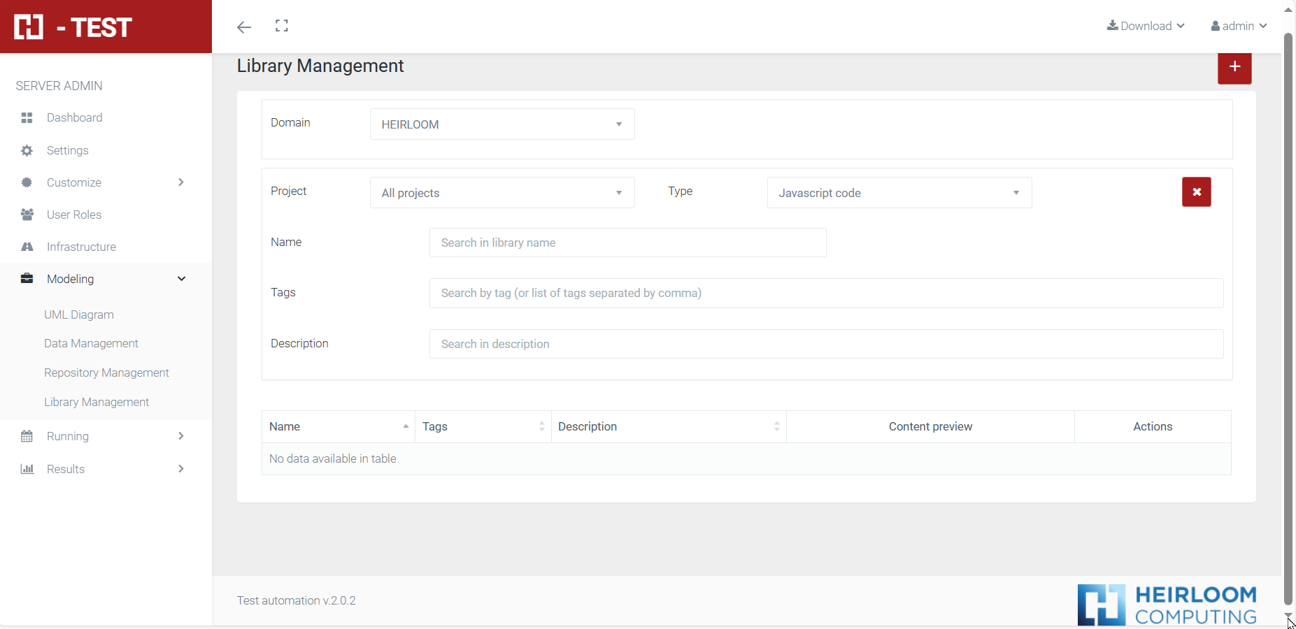 Library Management provides H-Test, and specifically the diagram modeling part, with a library management tool to store, organize and query javascript functions or Sql queries that the user considers useful, for example to be reused in the messages of other diagrams.