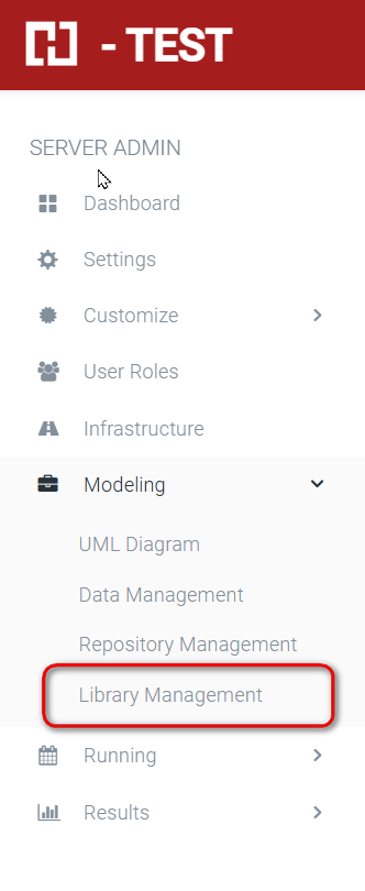 Since this is a tool to support diagram modeling, we find Library Management as a submenu within the main Modeling menu:
