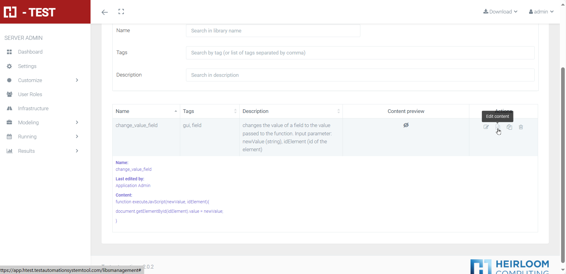 It contains a number of buttons to perform actions on each library item: edit, edit content, copy and delete.