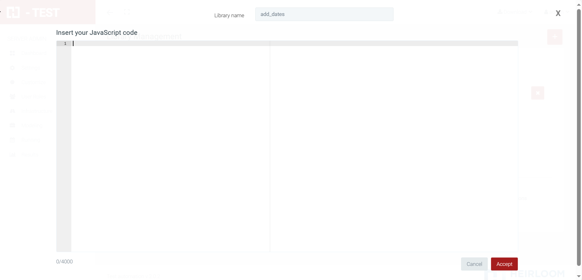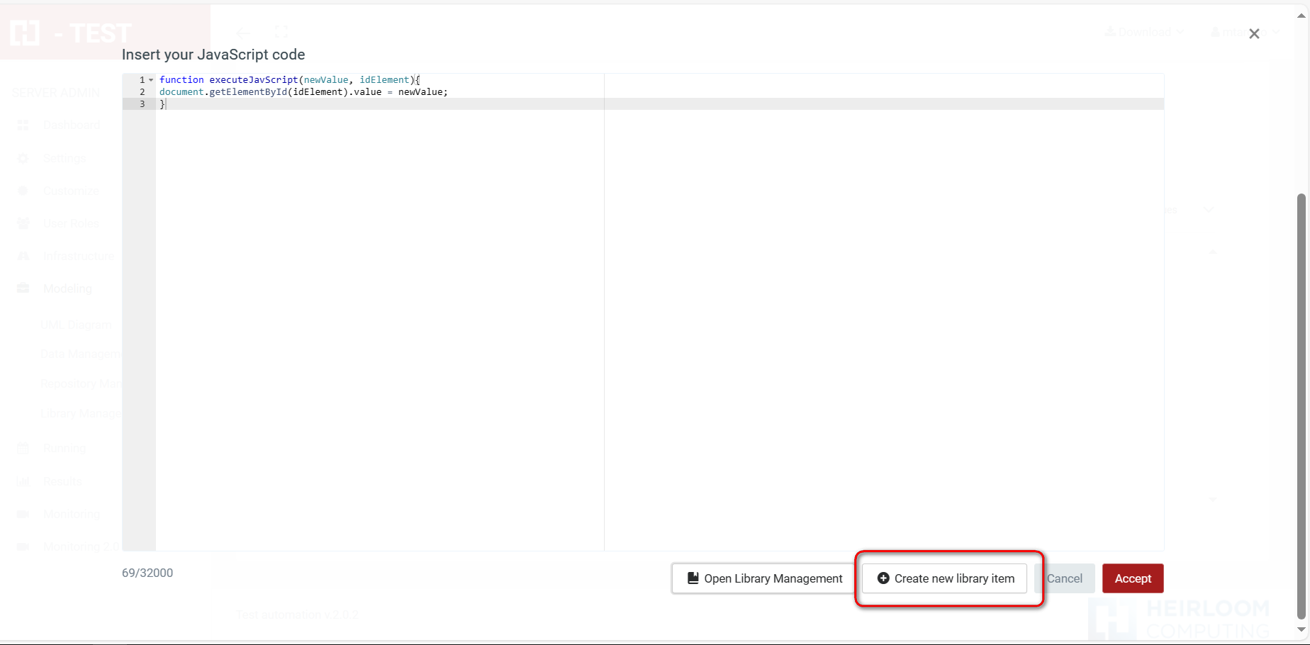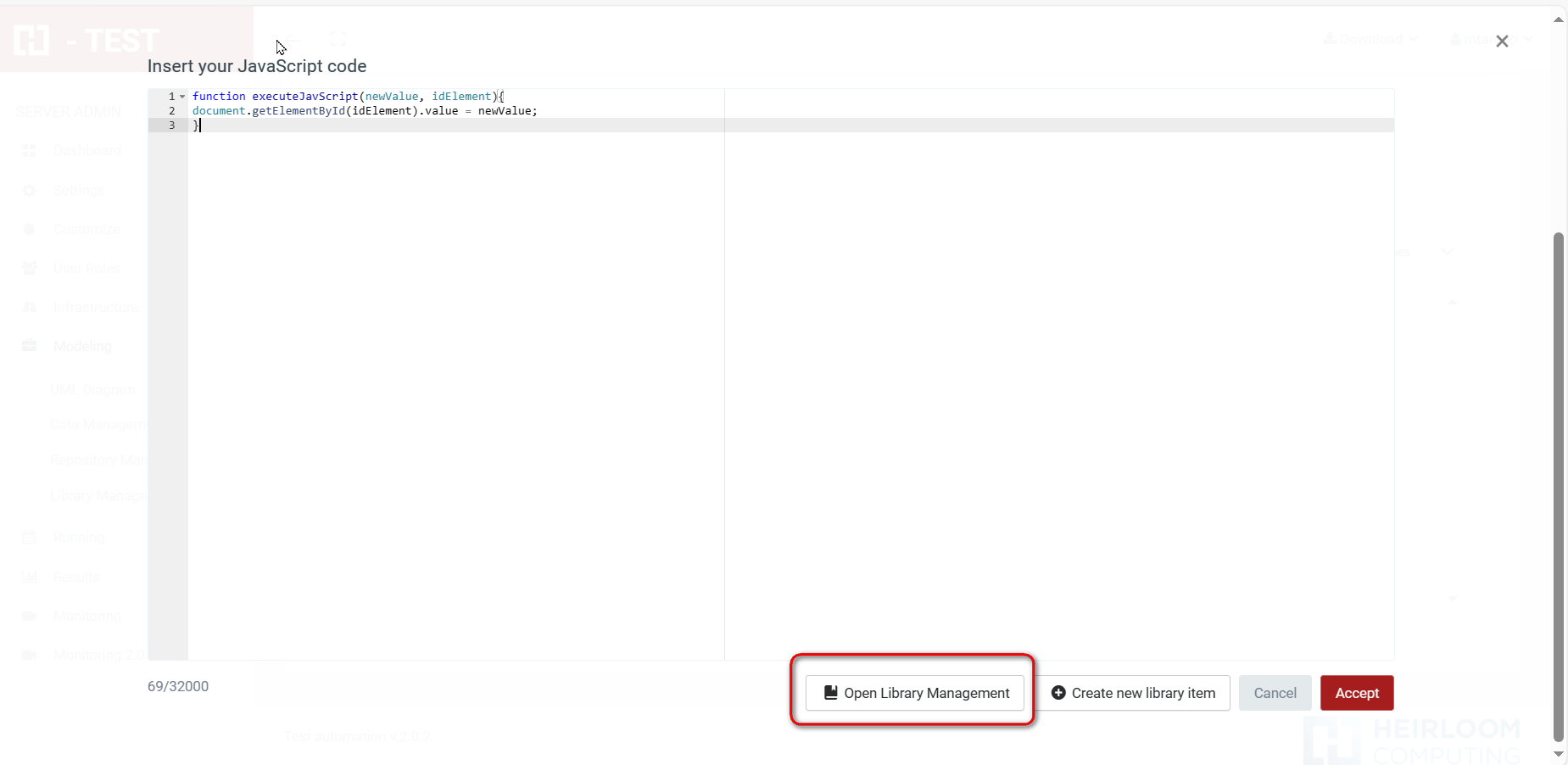 Clicking the "Open Library Management" button from the Modeling Javascript/Sql code editing window will automatically launch the Library Management page in a new tab of your browser.