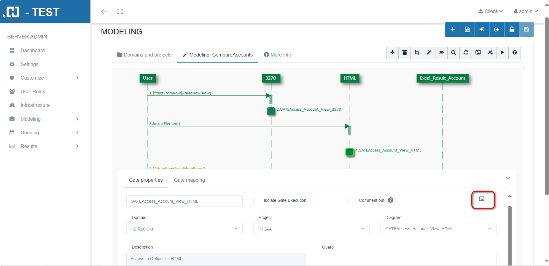 DATA MANAGEMENT: Allows to assign test case data to each Gate included in the diagrams.