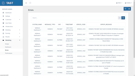 This data is divided according to the type of input message, and you can click on each fragment of the graph to view the error messages of that type of input message automatically. Clicking on any of the colors in the legend will open the messages corresponding to that color of all types. Boundary values are parameters that can be changed in database without code changes.