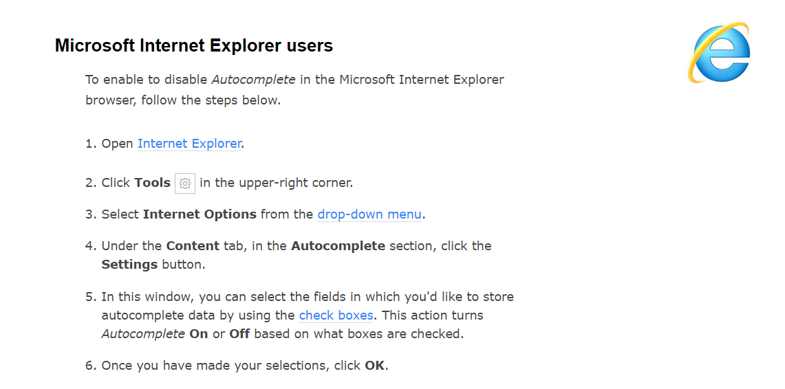 To enable the autocomplete in Internet Explorer, Edge and Chrome follow the next instructions:
