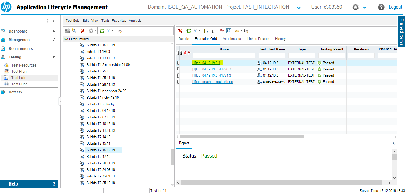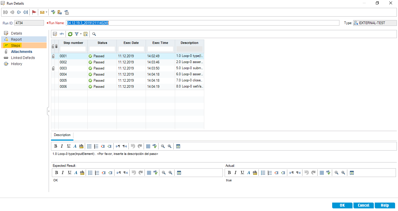 Then configure the upload to ALM. Once is uploaded, open ALM and search for the test we have uploaded. After that we choose the execution we want, for example like in the following image.