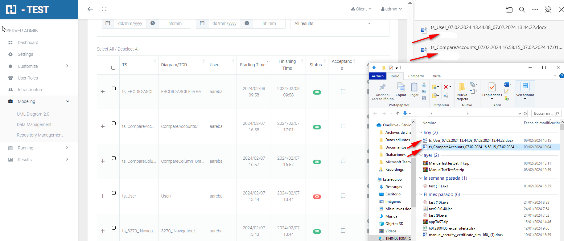 - Download evidence: using this option you can store in a PC directory the evidence of test cases executed