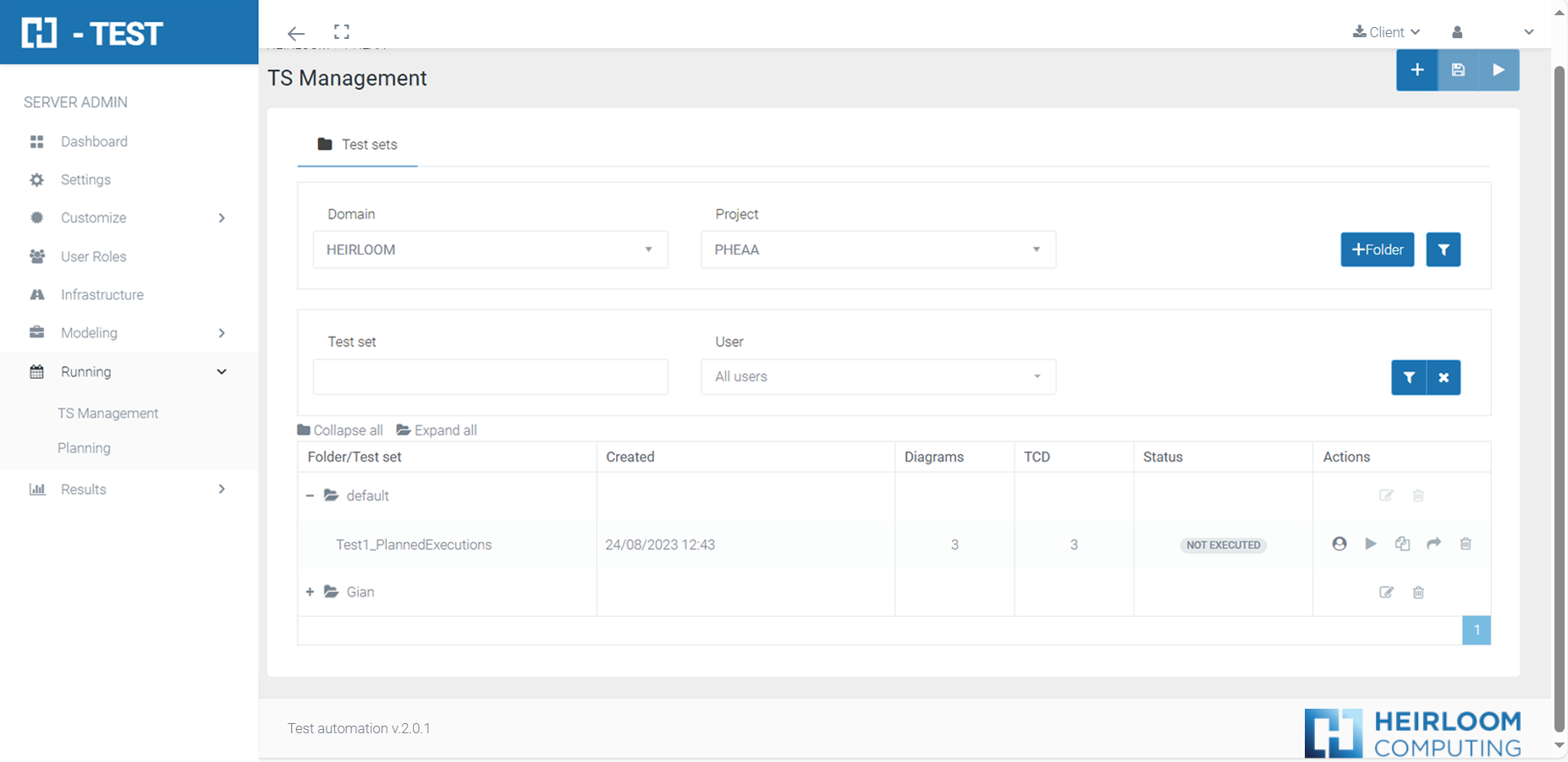 This option of the H-TEST tool allows the user to execute the Test Sets. Also, it allows to create new Test Sets to be executed.