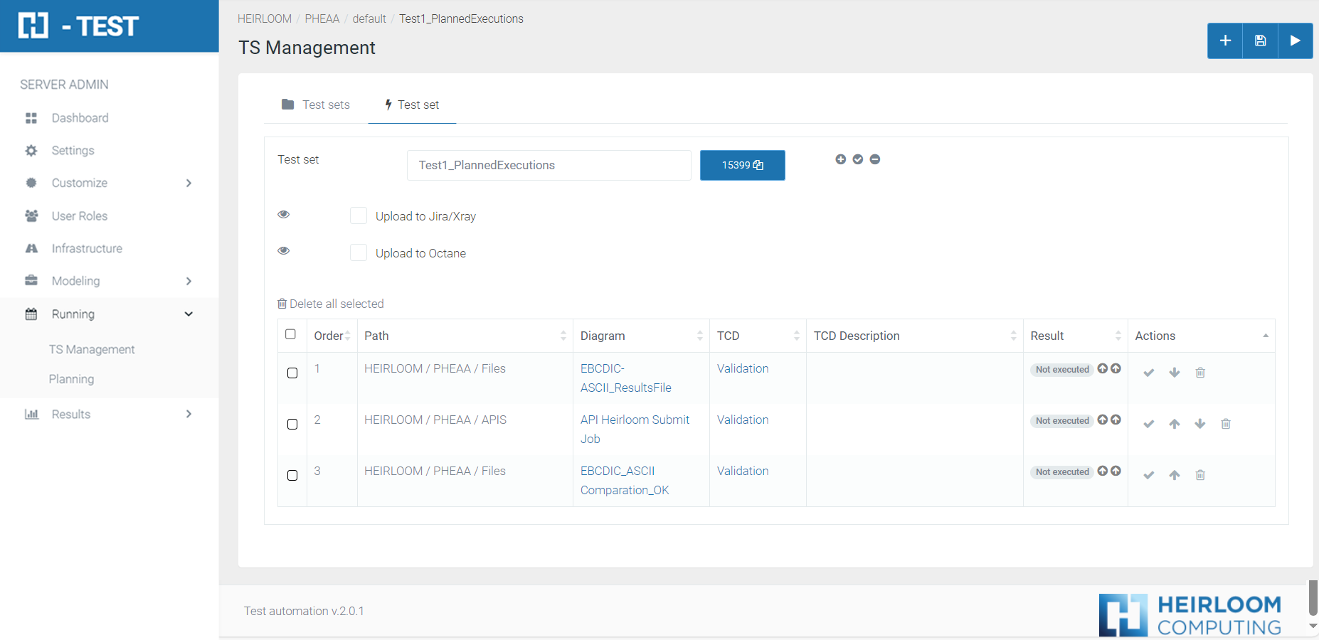 Upload the Test Set to ALM: all steps of the set of test cases will be added to the tool ALM (Application Lifecycle Management).
