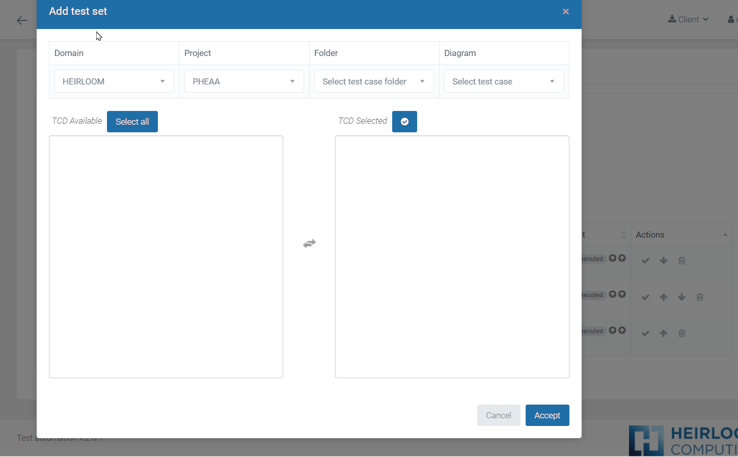 All Test Case Data on the right-hand list will be loaded to the Test Set once we click over the “Accept” button of the screen.