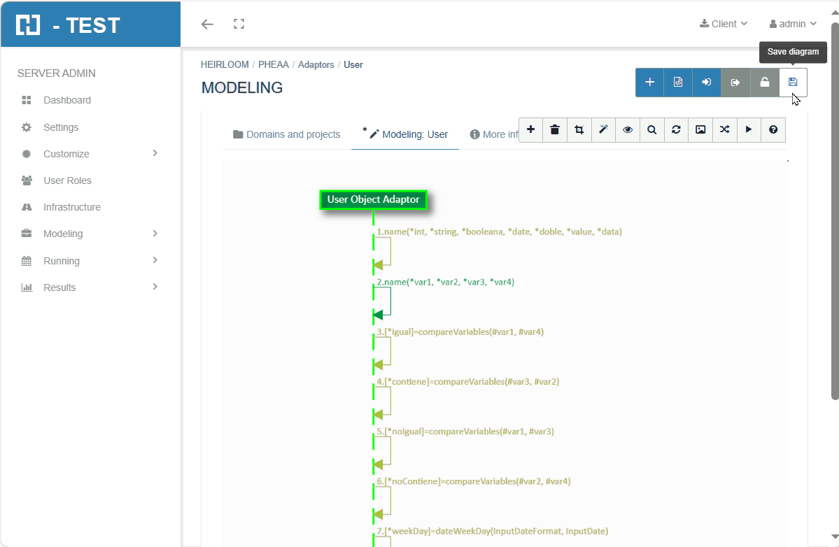 Create or update in the system a copy of the diagram that we are editing on the screen. Once saved, we can continue working with the same diagram.