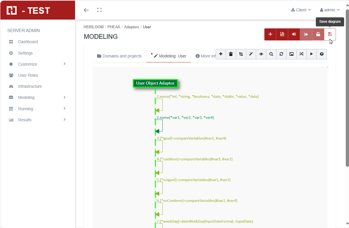 Create or update in the system a copy of the diagram that we are editing on the screen. Once saved, we can continue working with the same diagram.