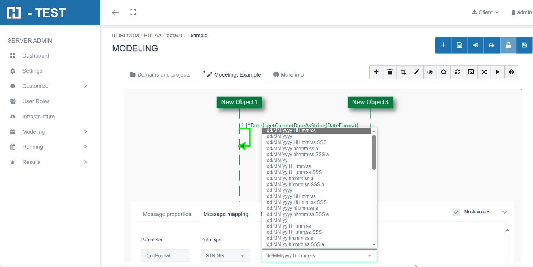 dateDifference: returns the difference between the dates in the selected unit. You need to select the date formats, both the first and second one, and input the first and second date in those formats. The last parameter is to select in which unit you want the time to be returned.