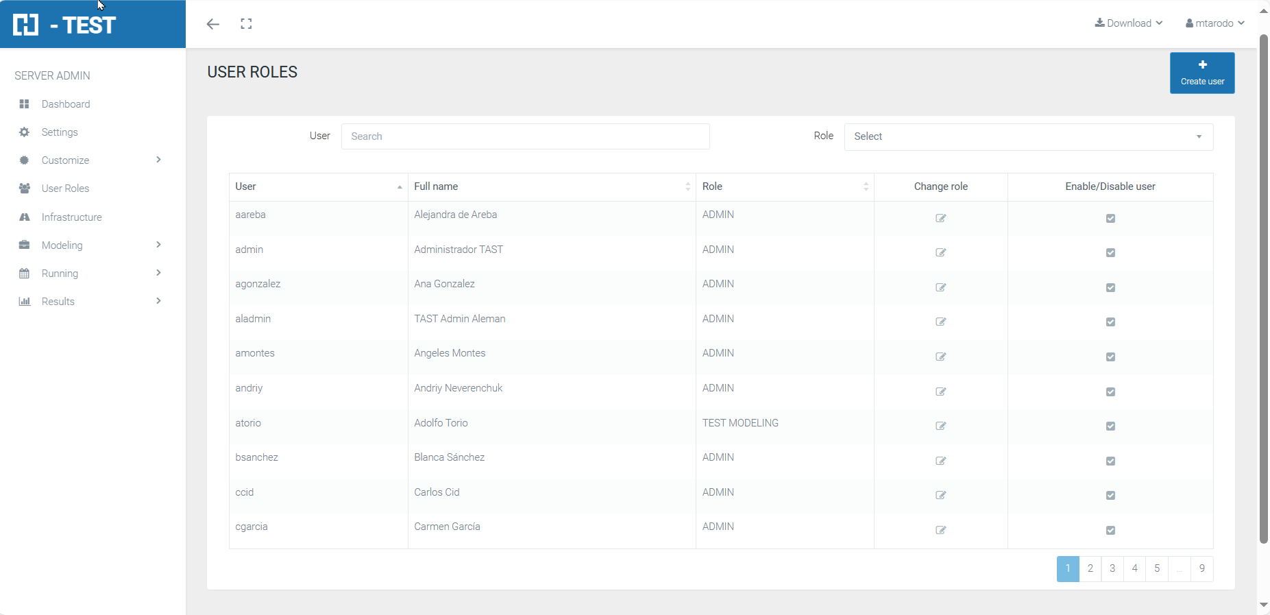 Administrator: to administrate H-TEST. Access to all the features. It is the only role that can administrate others.